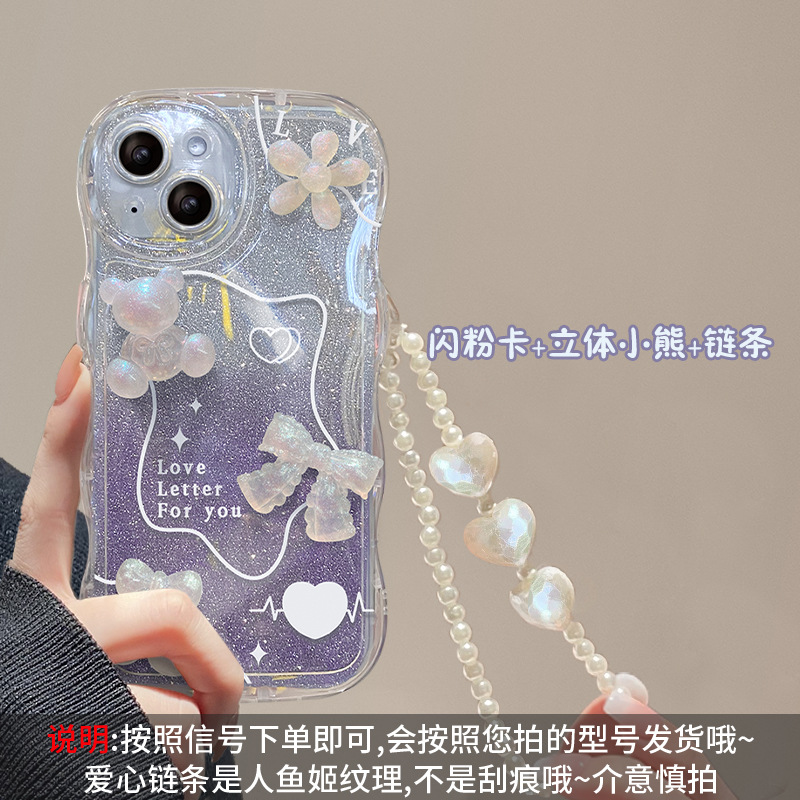 - GX4[波浪壳+渐变闪粉+手链]紫色立体小熊