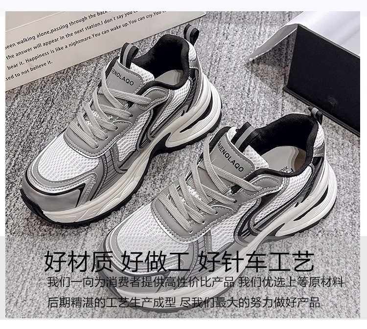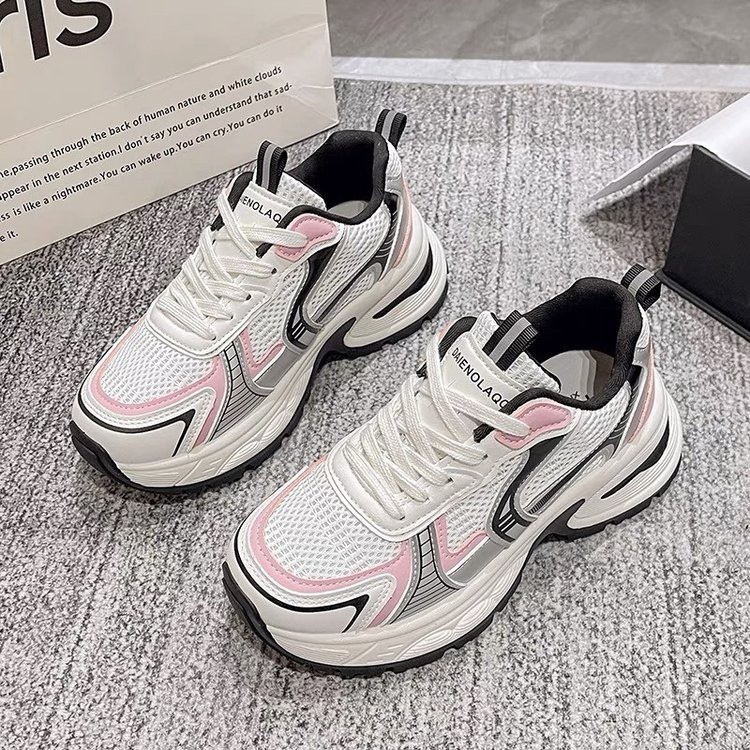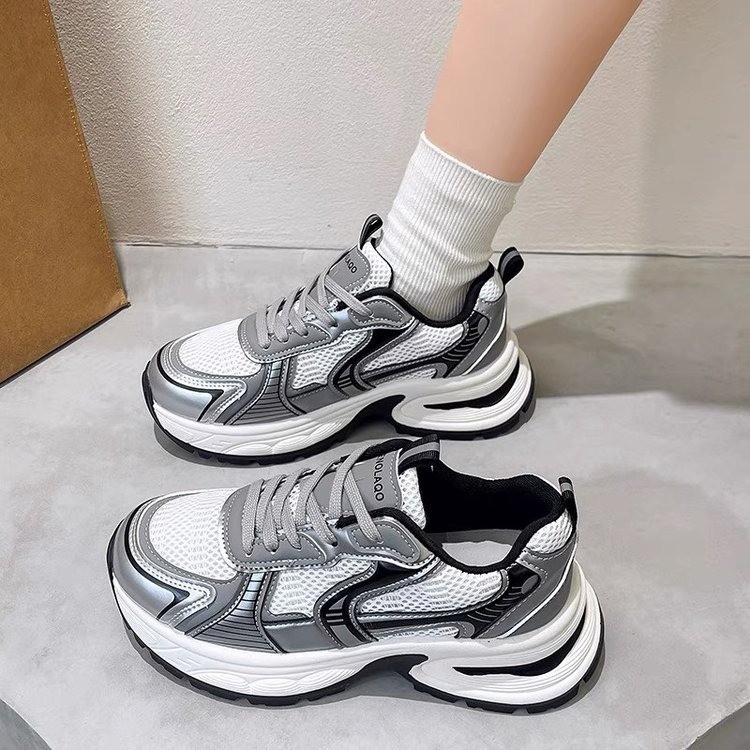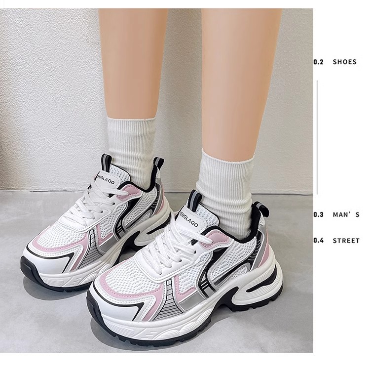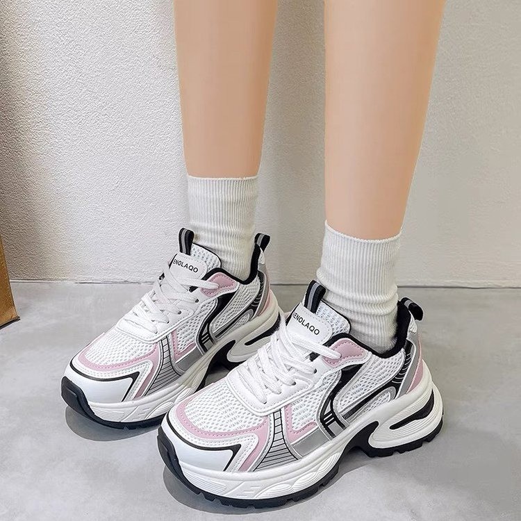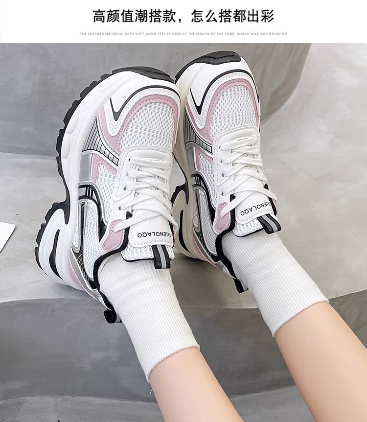 网面百搭休闲跑步运动鞋春秋透气小个子厚底增高老爹潮鞋