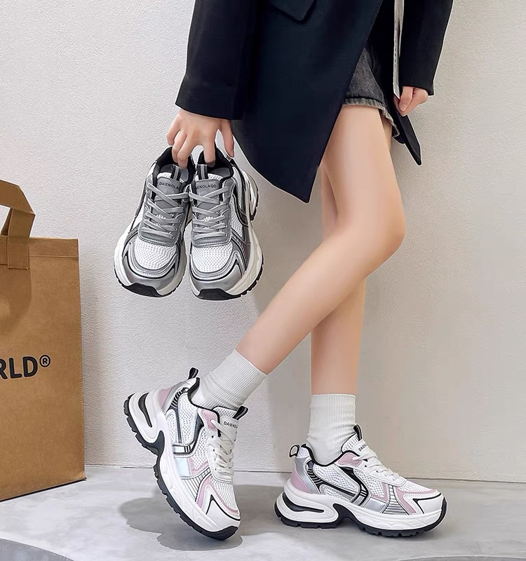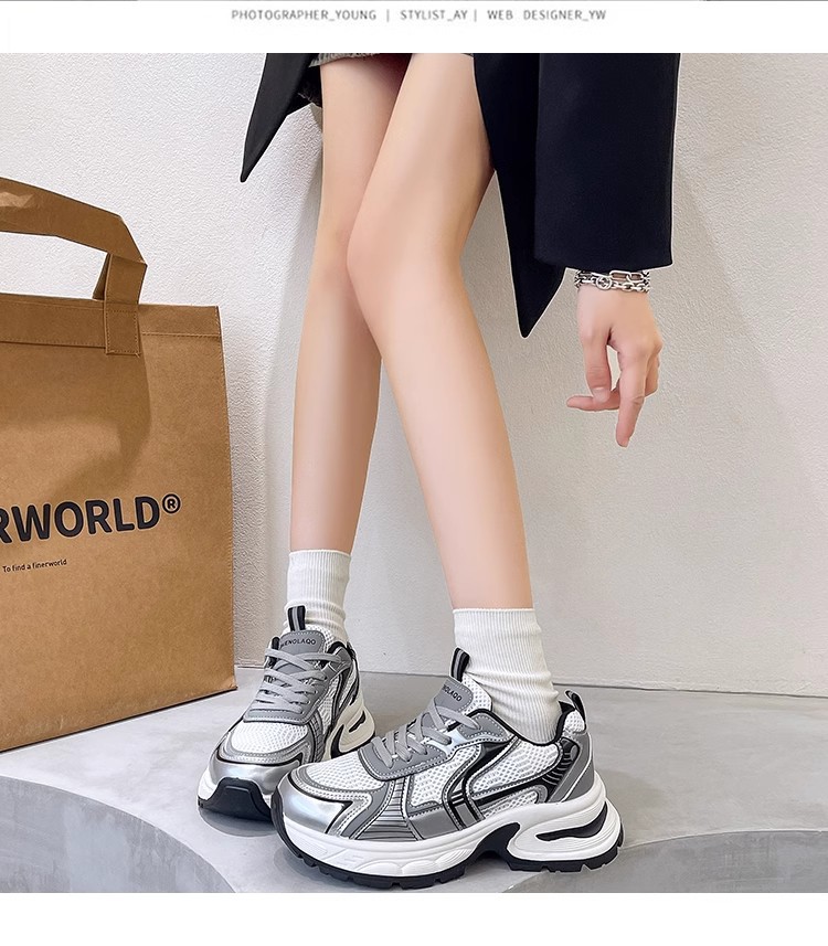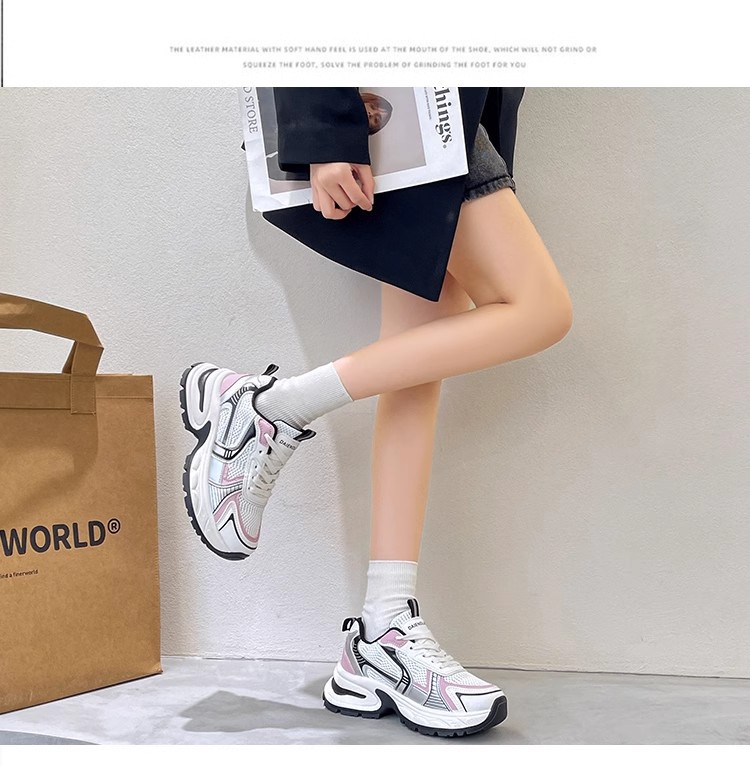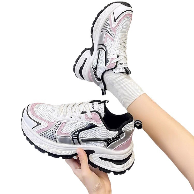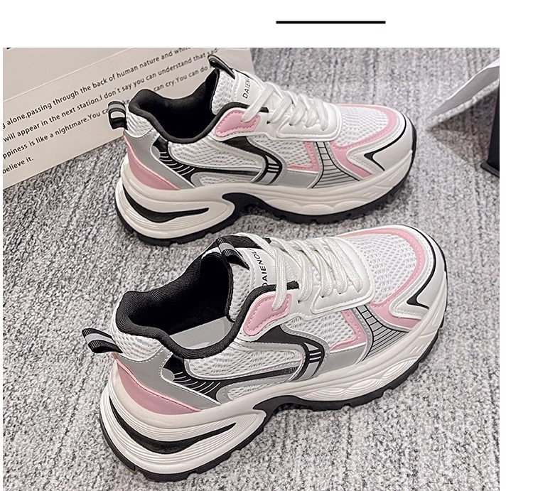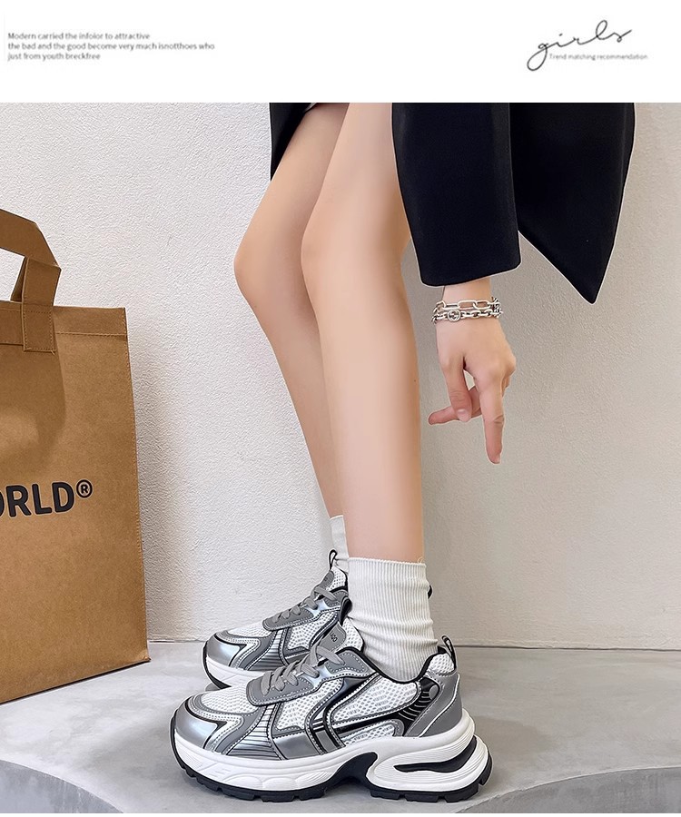 网面百搭休闲跑步运动鞋春秋透气小个子厚底增高老爹潮鞋