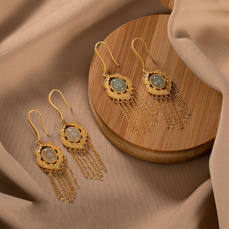 宫廷风大气镶嵌和田青玉耳环气质典雅别致镶嵌和田玉尚镀金耳饰