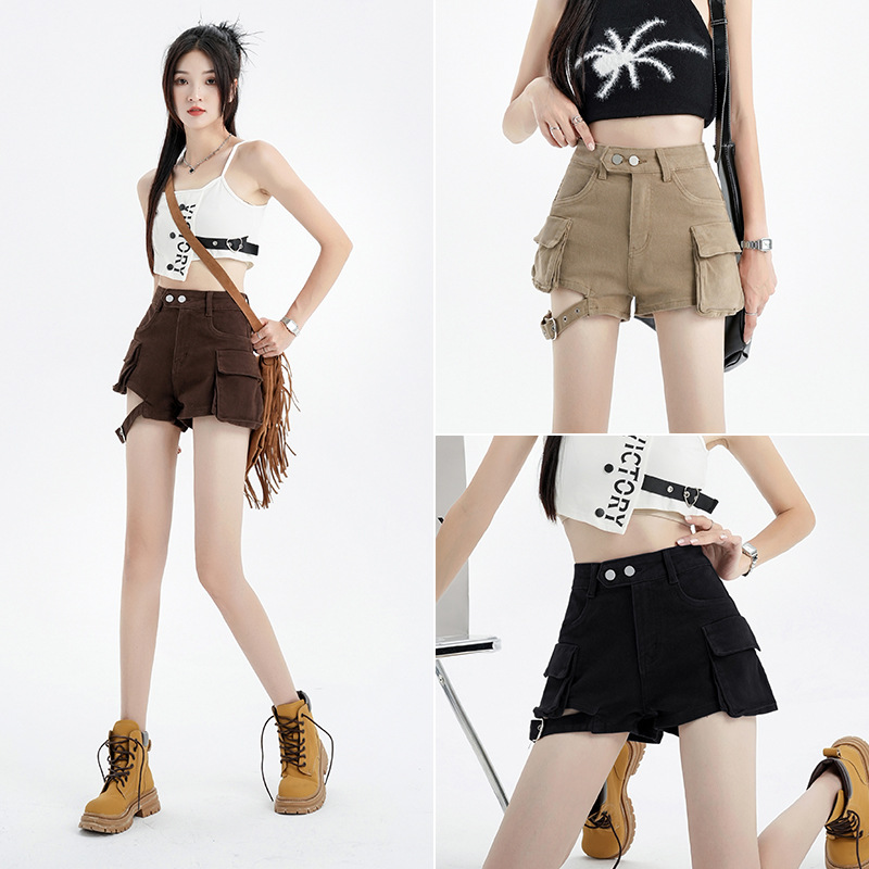 美式工装牛仔短裤女春夏季外穿设计感小个子紧身弹力辣妹a字热裤