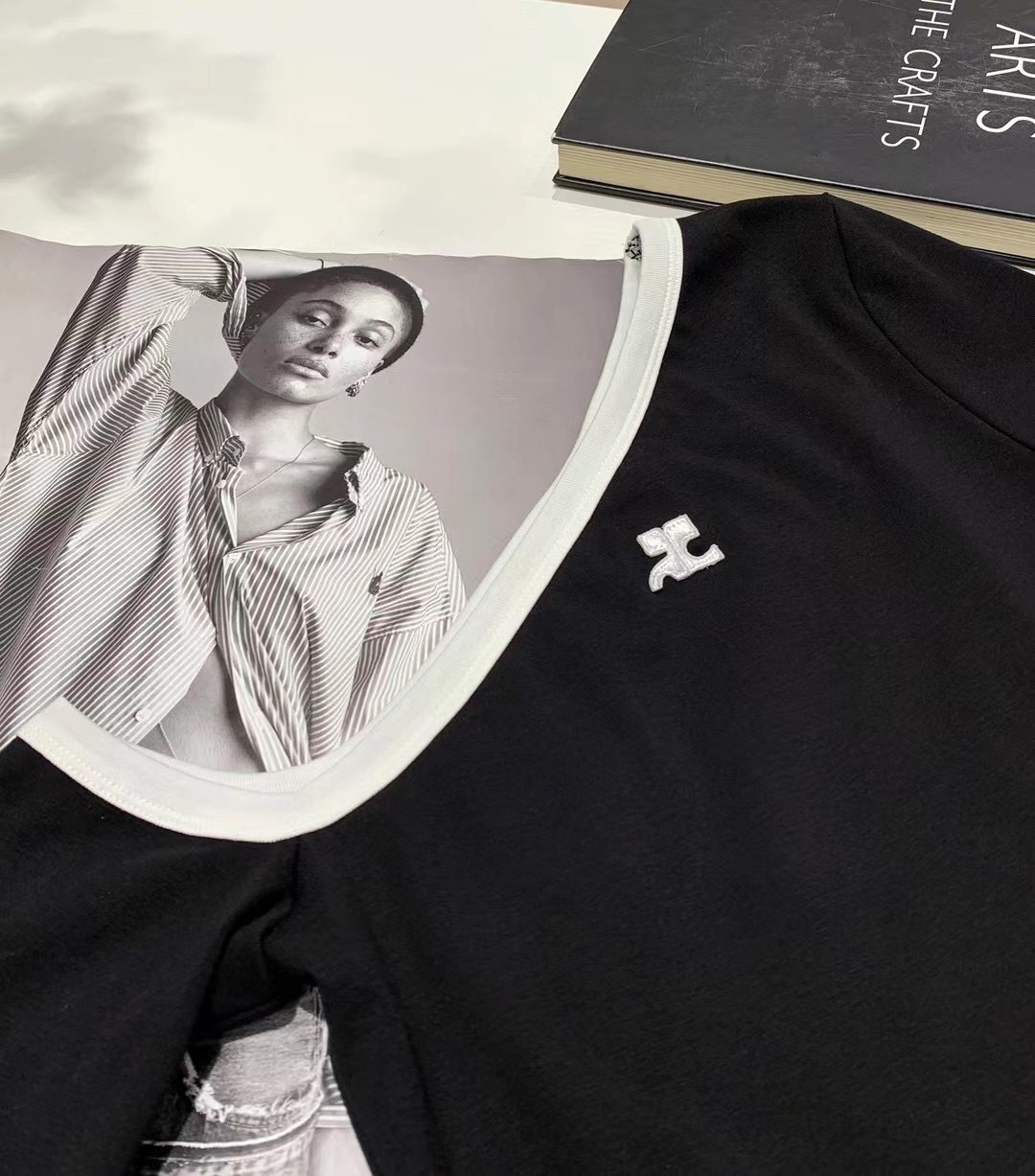 V领短袖t恤男夏季潮流宽松大码五分半袖衣服青少年潮牌肌理感体恤