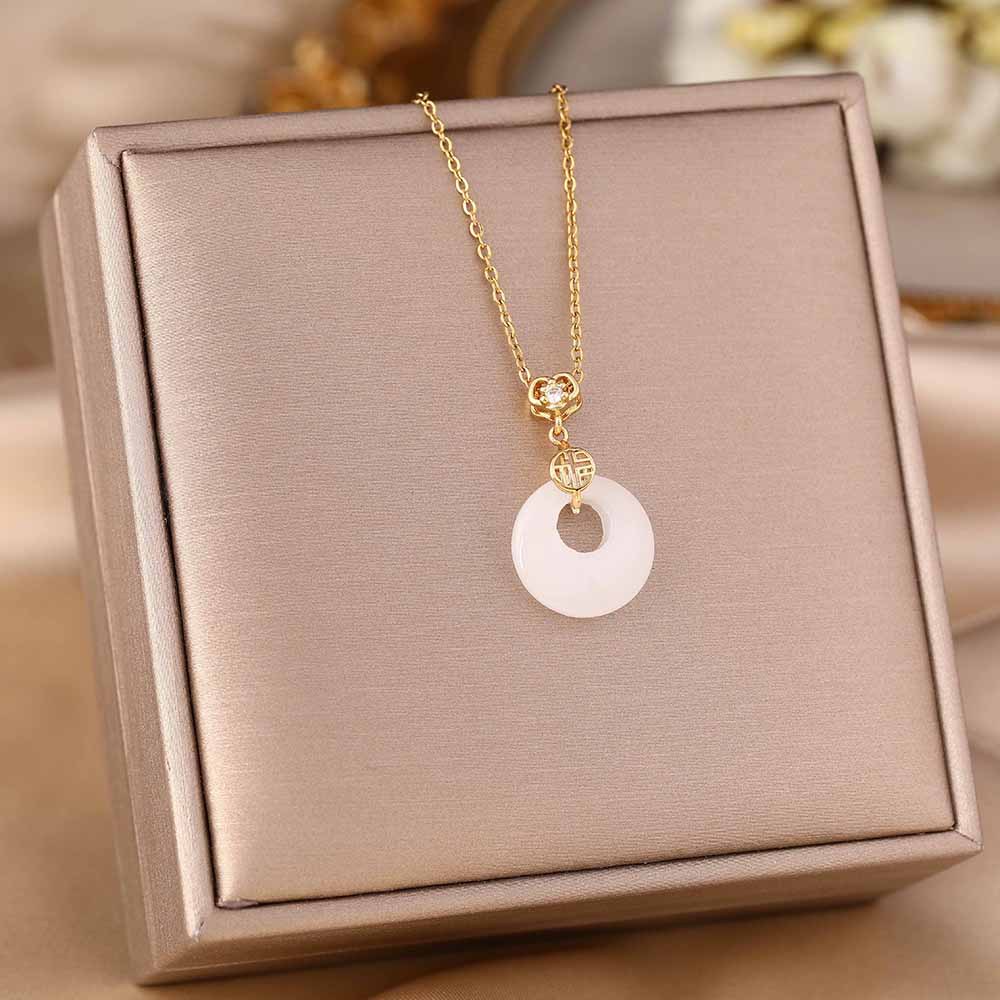 本命年复古祥云如意平安扣项链高级感仿和田玉吊坠钛钢锁骨链饰品