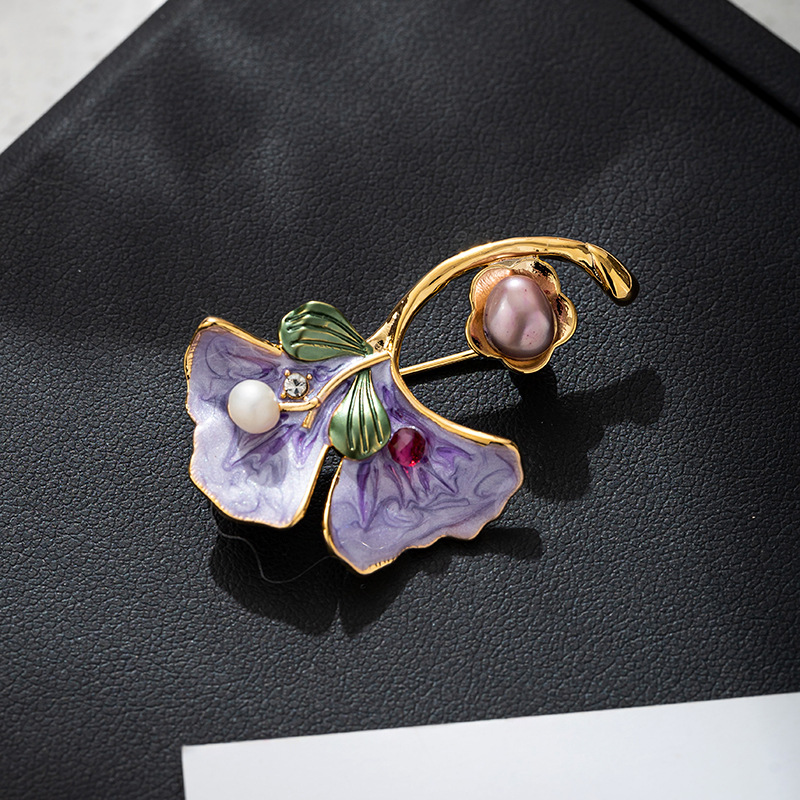 银杏叶复古胸针女高级感个性珐琅滴油小众设计感时尚大气胸花配饰