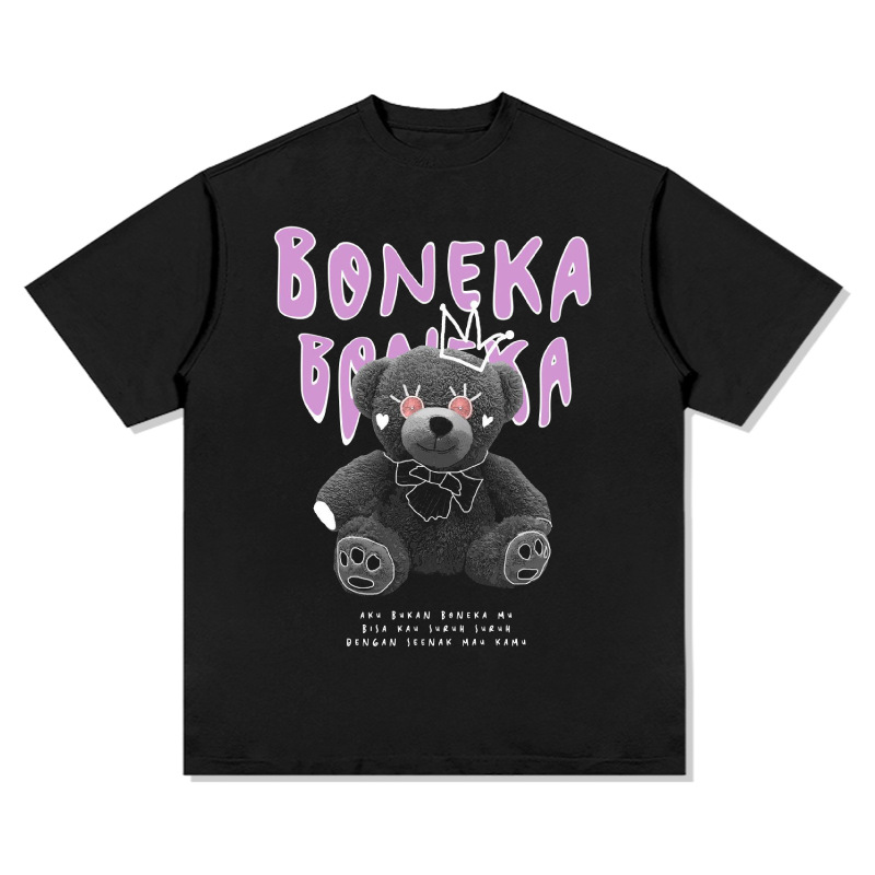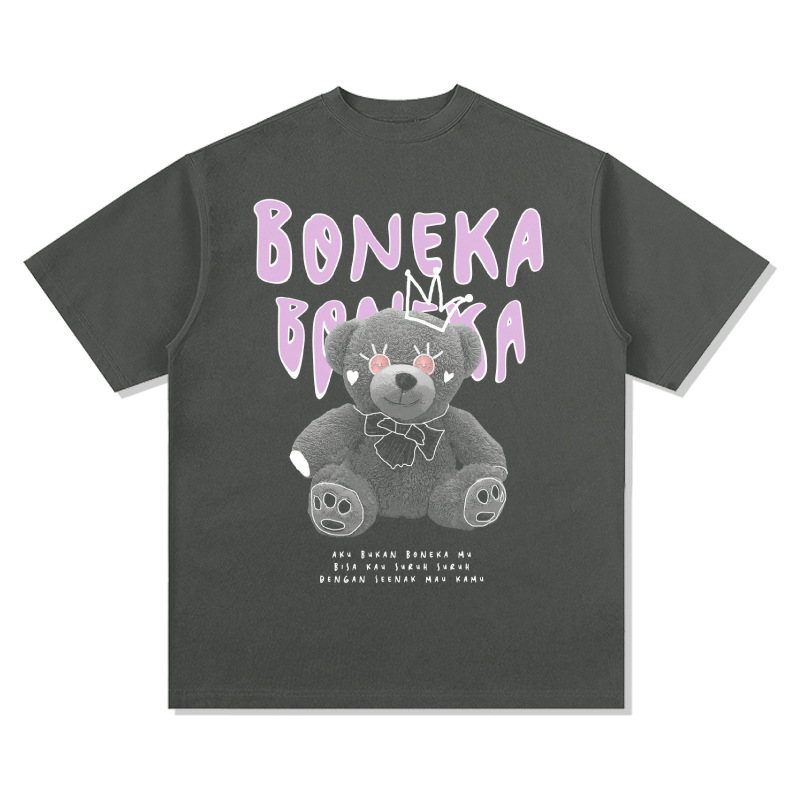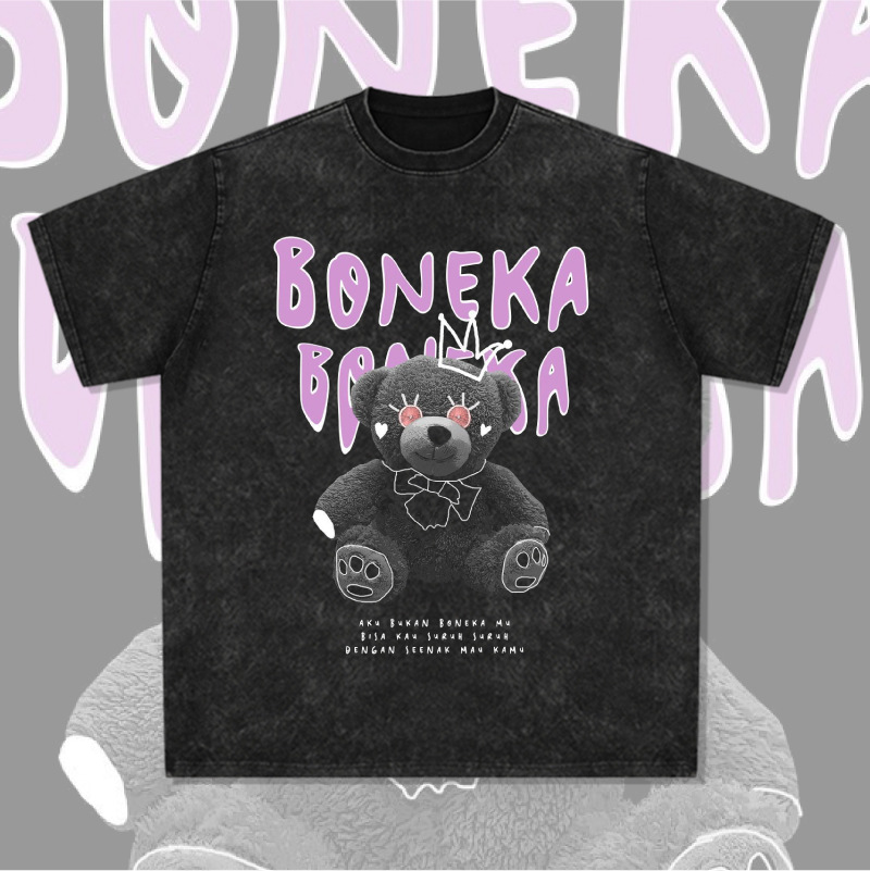 新款复古熊娃印花百搭短袖t恤美式复古vintage重磅纯棉潮打底衫