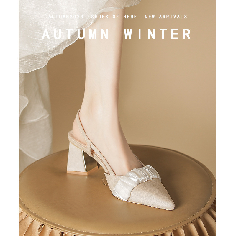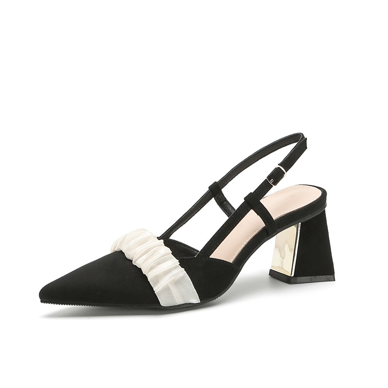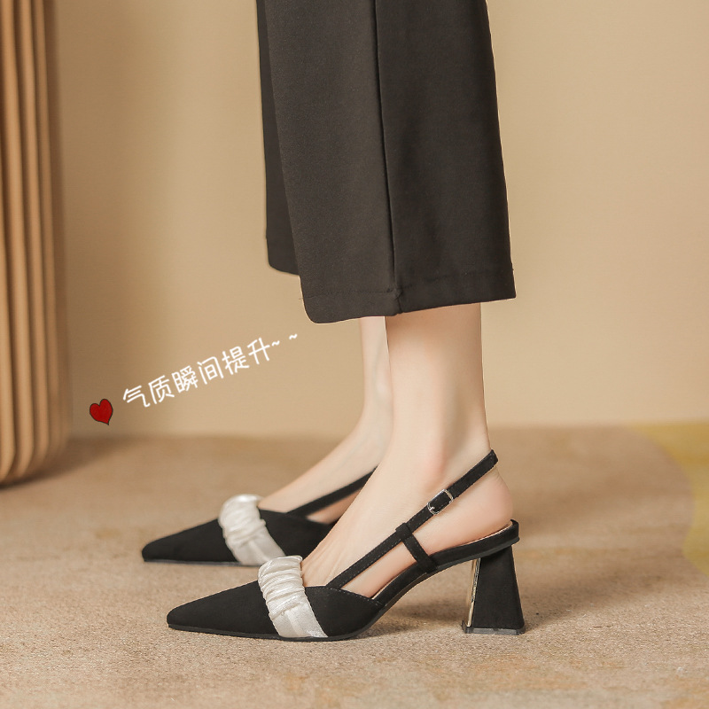 凉鞋女夏季新款法式气质尖头浅口黑色高级感高跟包头凉鞋女