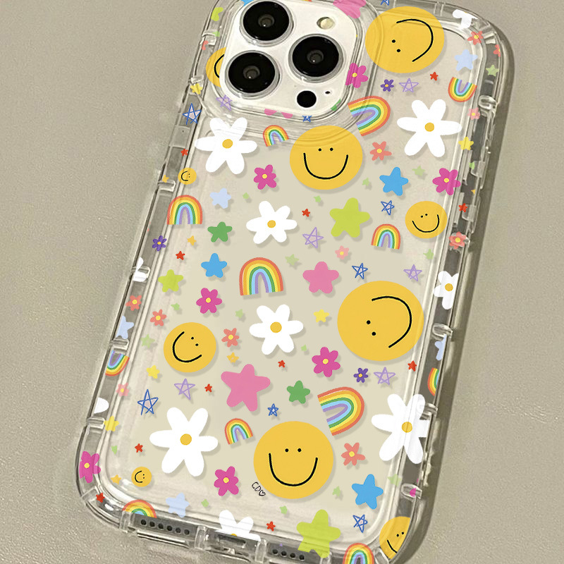 适用vivoY93/Y91/Y95/Y75/S17/S16气囊手机壳彩虹微笑大孔
