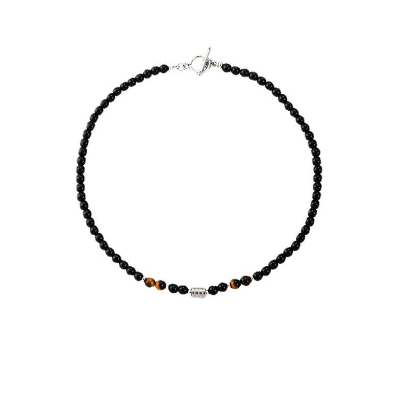 新款男士黑曜石项链男简约设计高级感串珠男士复古转运珠嘻哈男生
