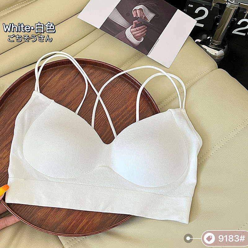 镂空交叉美背女士内衣舒适无钢圈透气裹胸小胸聚拢乳胶一体杯抹胸