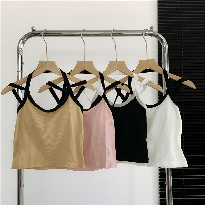 甜辣妹纯欲风短款小吊带夏修身露肚脐上衣美背带胸垫运动背心外穿