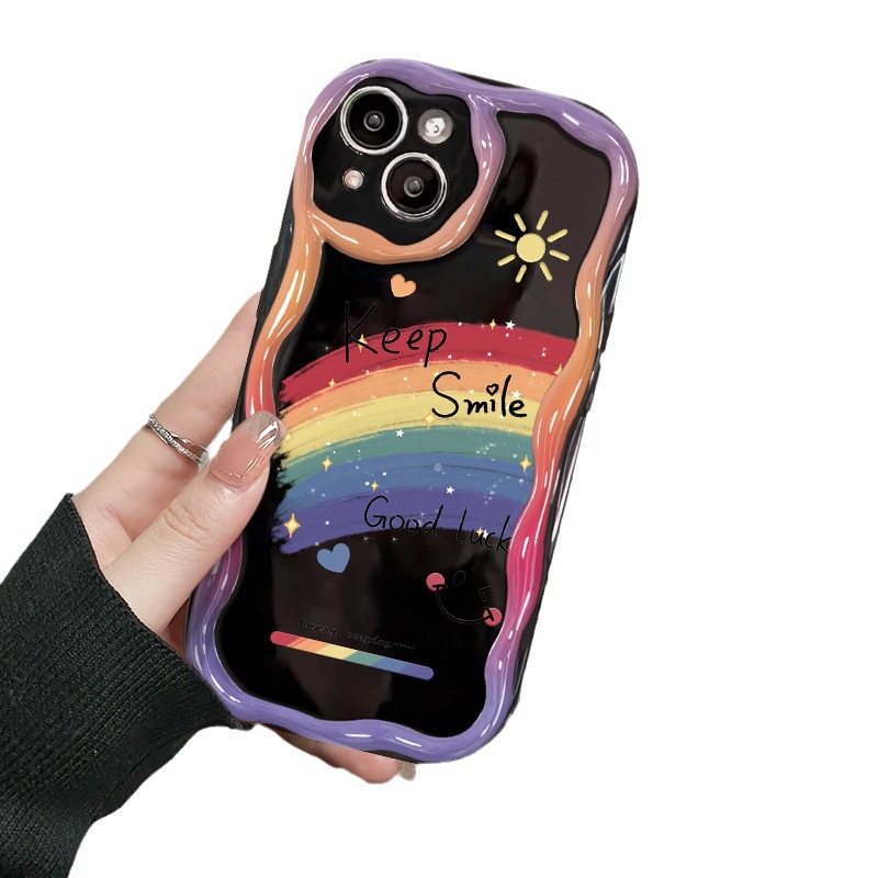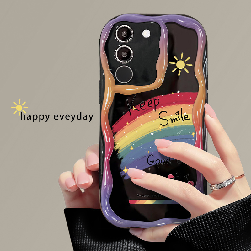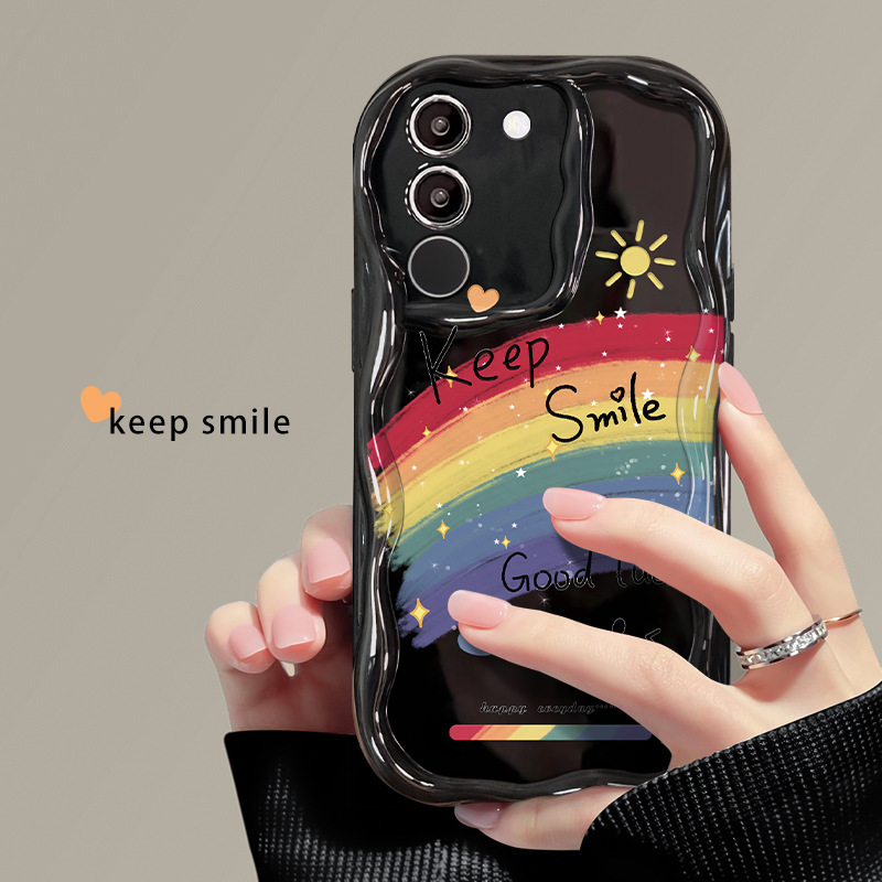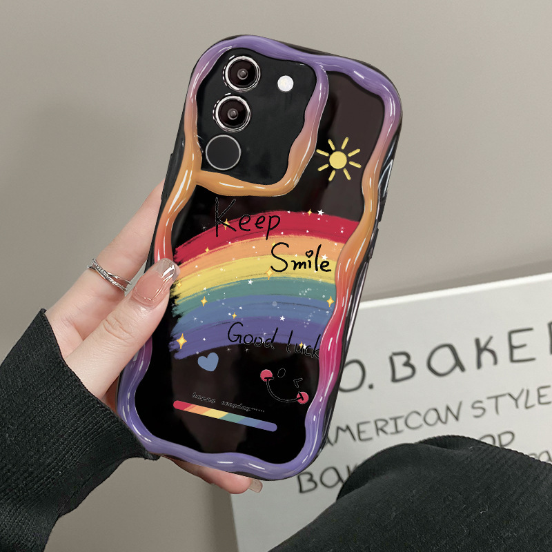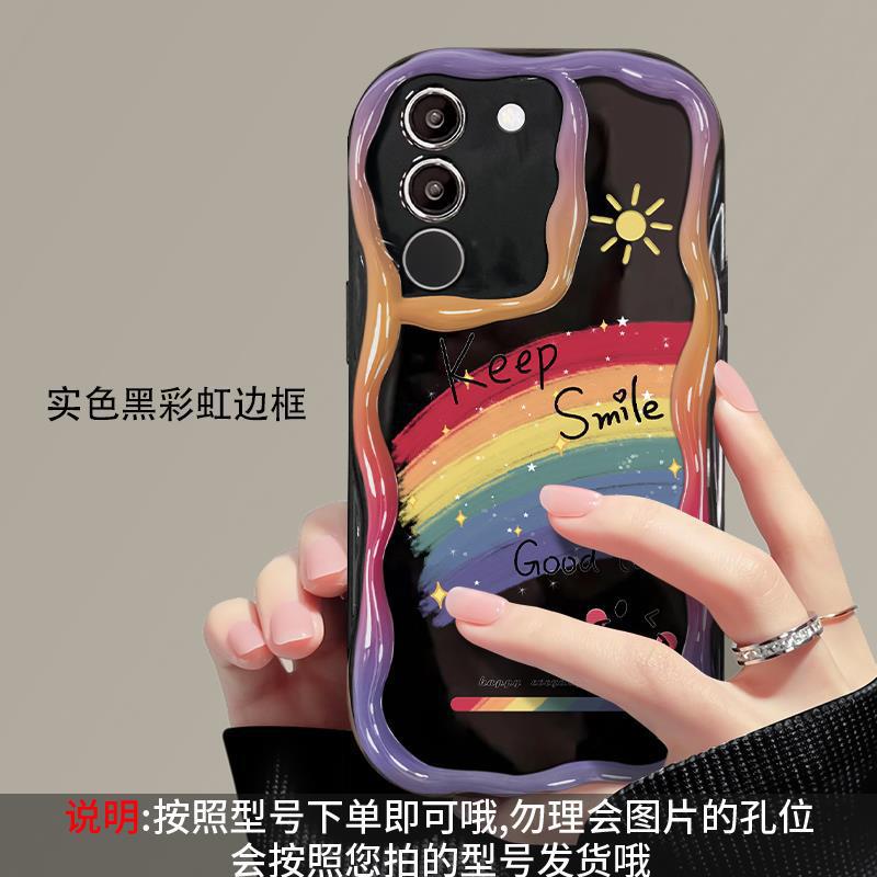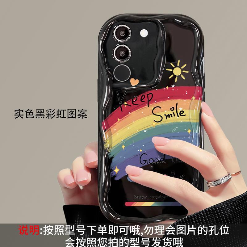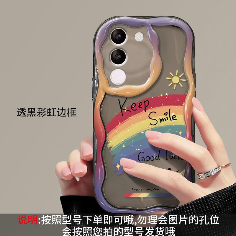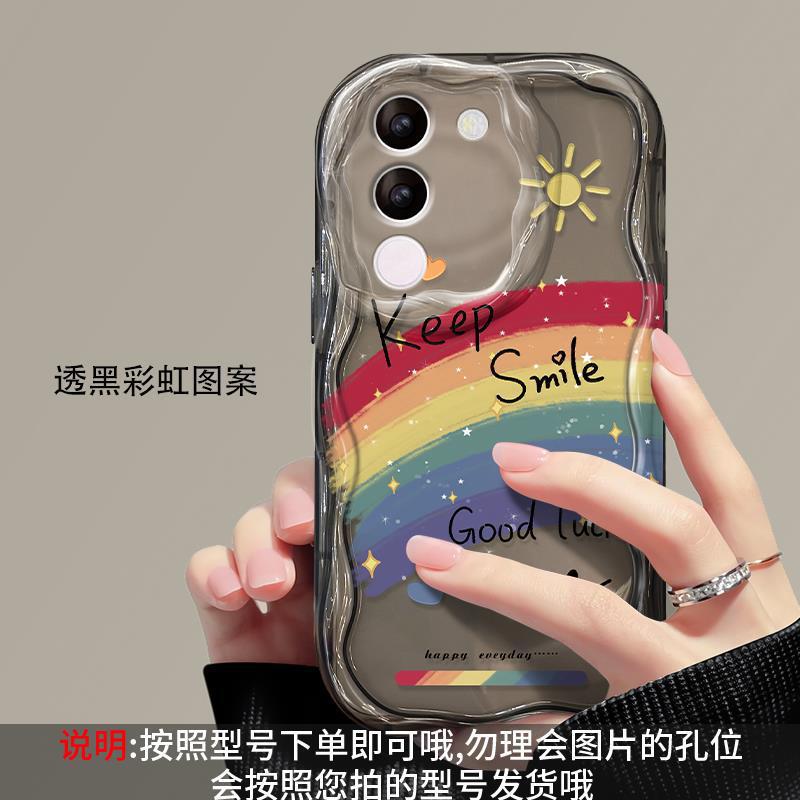 适用vivos17手机壳vivox90/80软壳x60/50奶油纹s15/s16油画彩虹笑