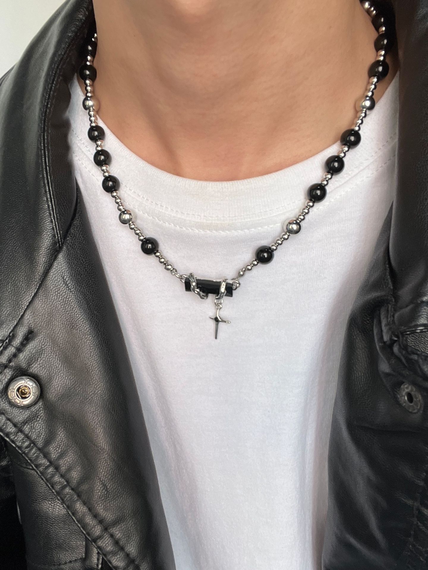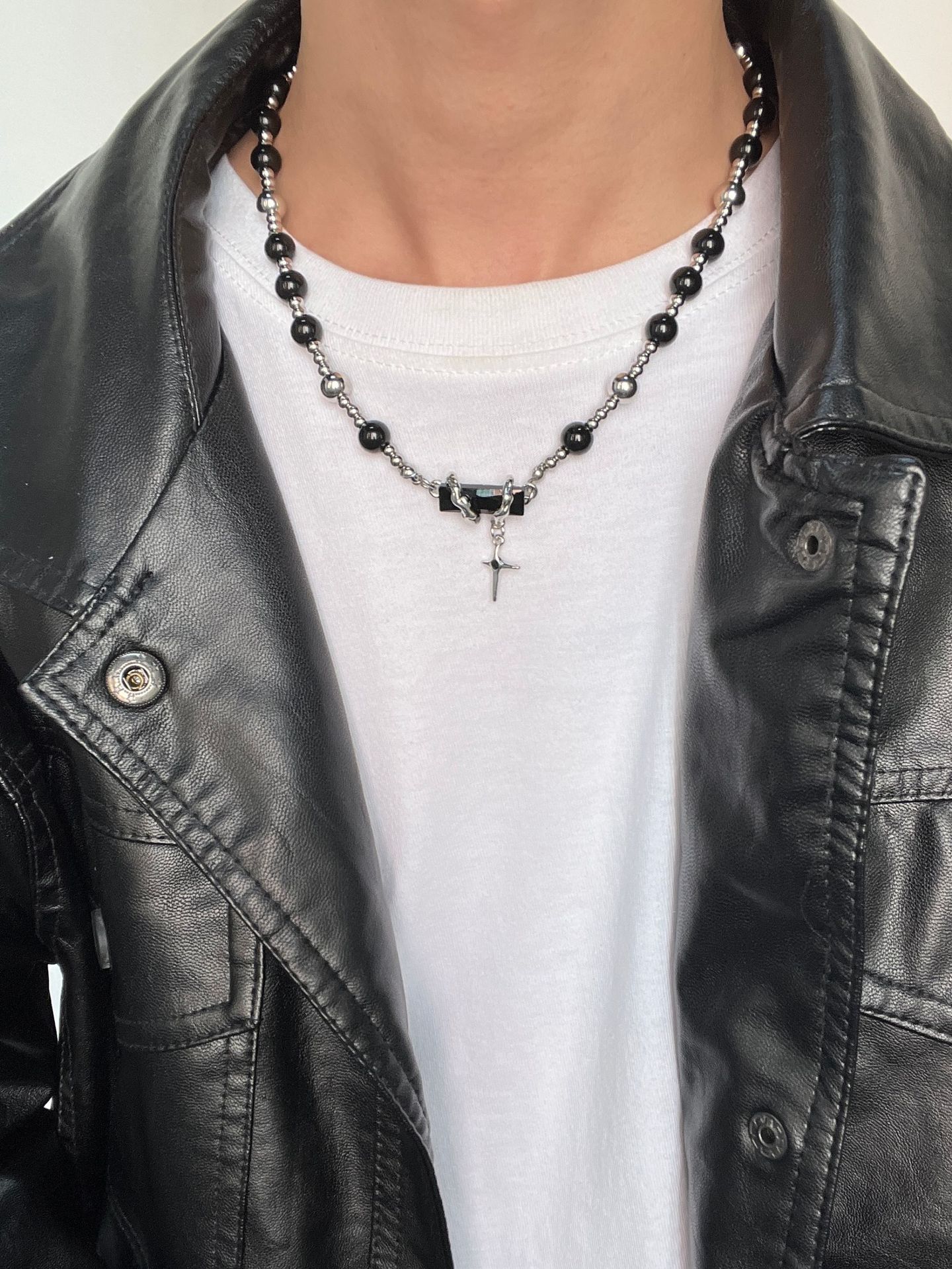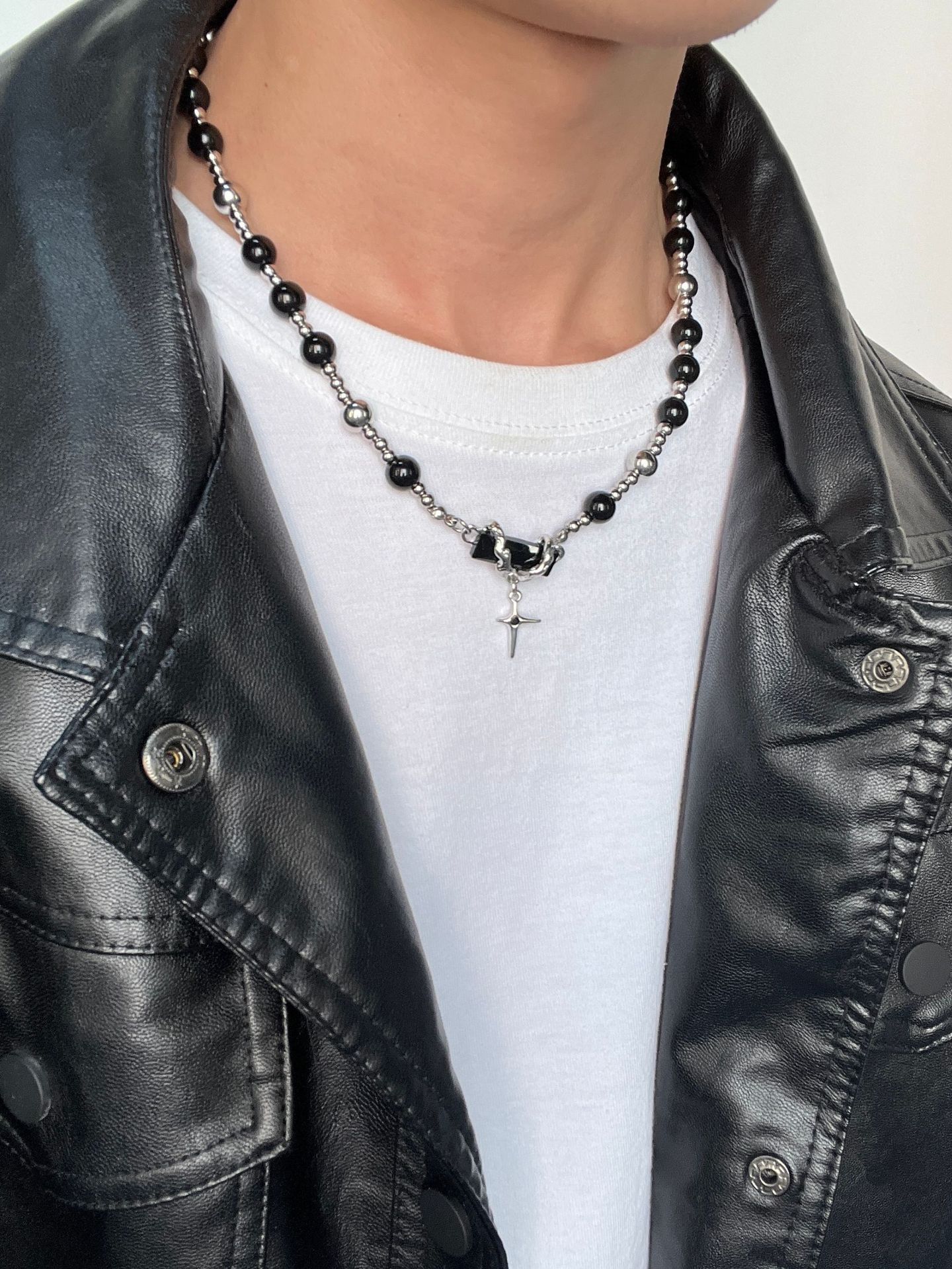 小众设计高级感男士锁骨链潮牌女嘻哈星芒宝石黑珍珠项链男款