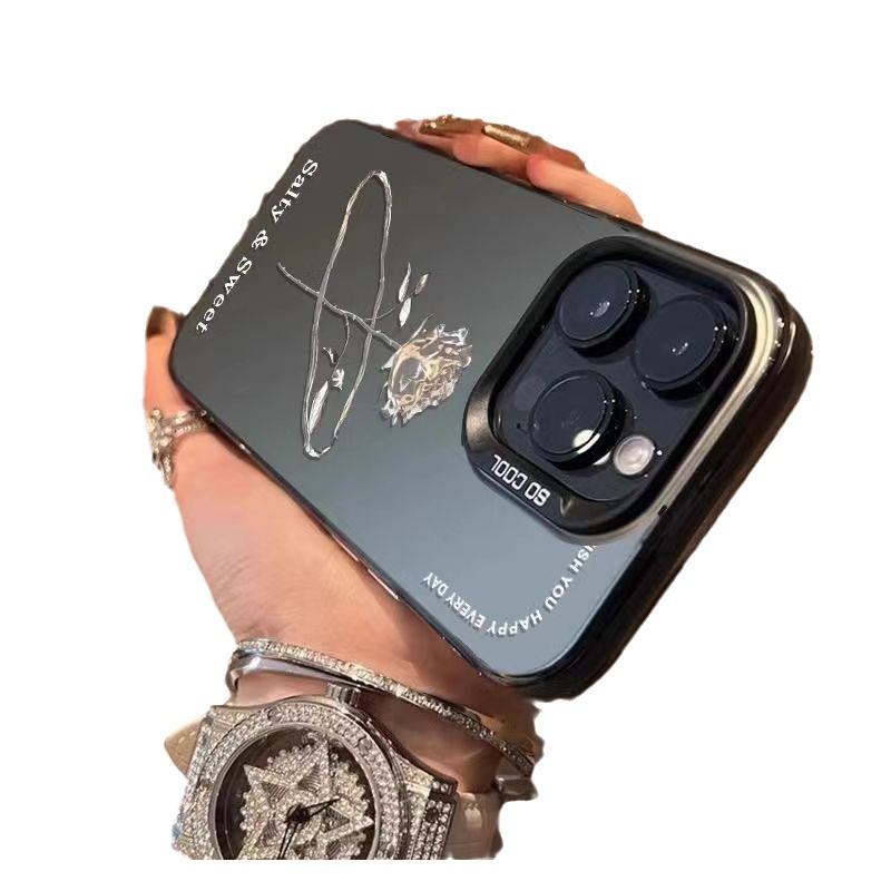ins风一支玫瑰适用OPPORENO11PRO磨砂彩银手机壳全包VIVOX90/小米