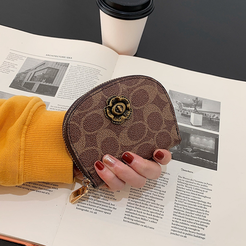 新款山茶花零钱包女士印花半圆风琴卡包女多卡位