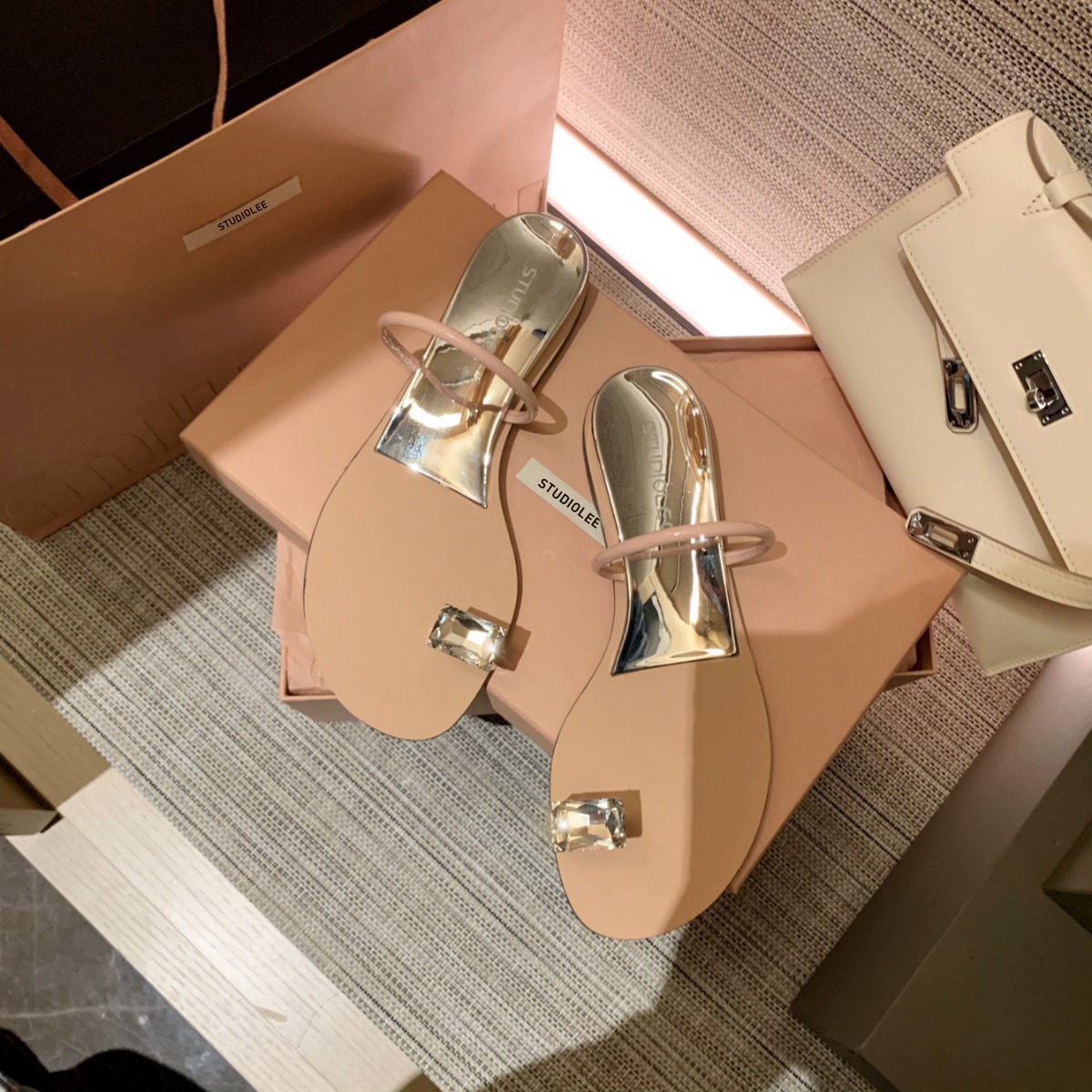 夏带水钻鸽子蛋内增高夹趾平底凉拖鞋女外穿时尚