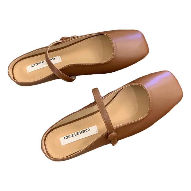 半拖乐福鞋懒人拖鞋单鞋女鞋子小众凉拖平底鞋法式复古玛丽珍鞋