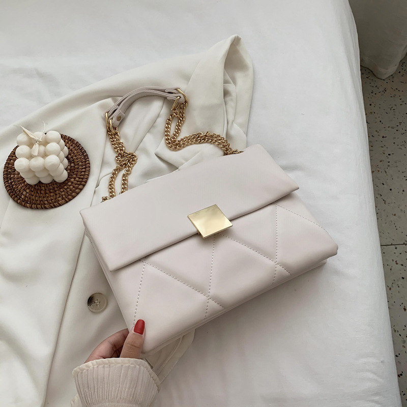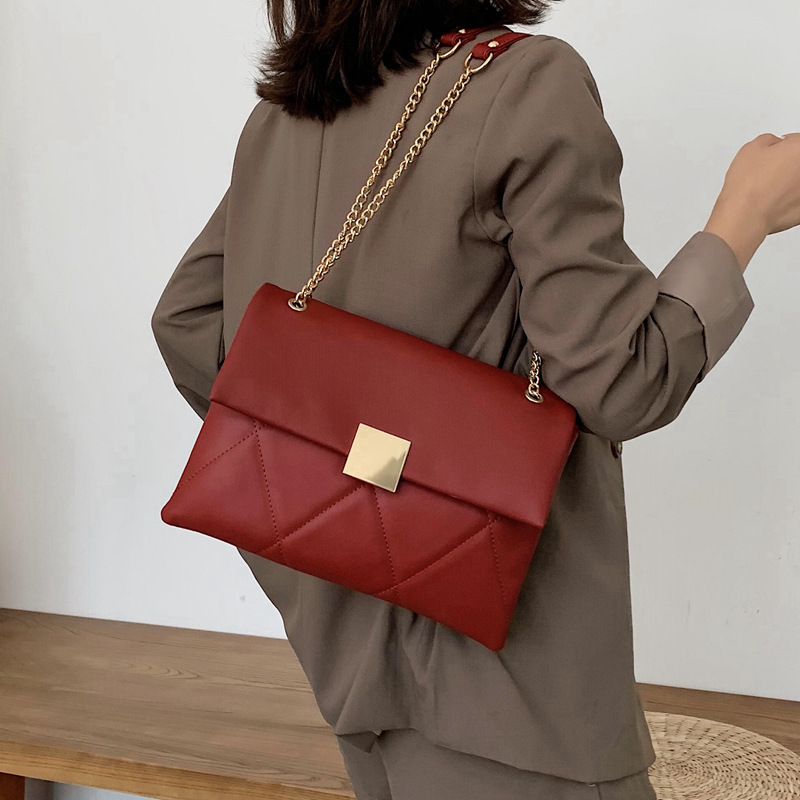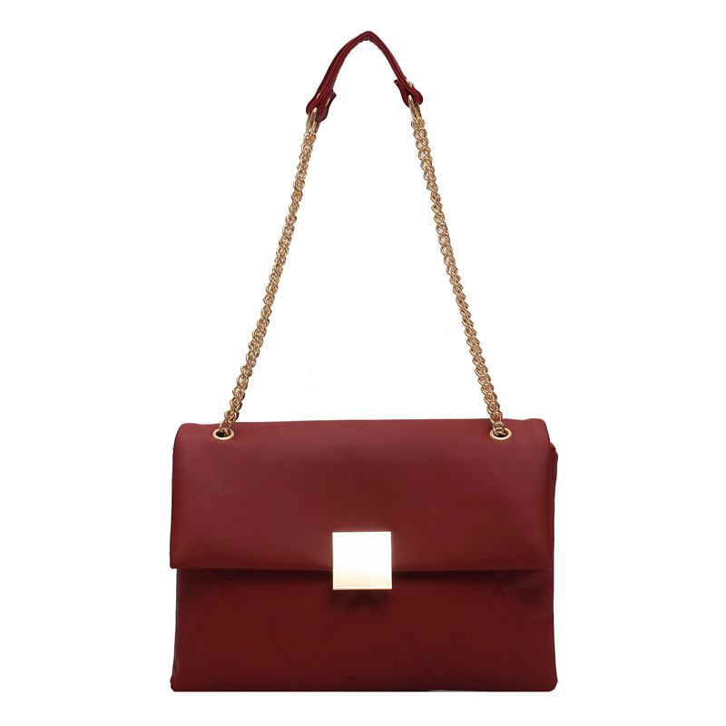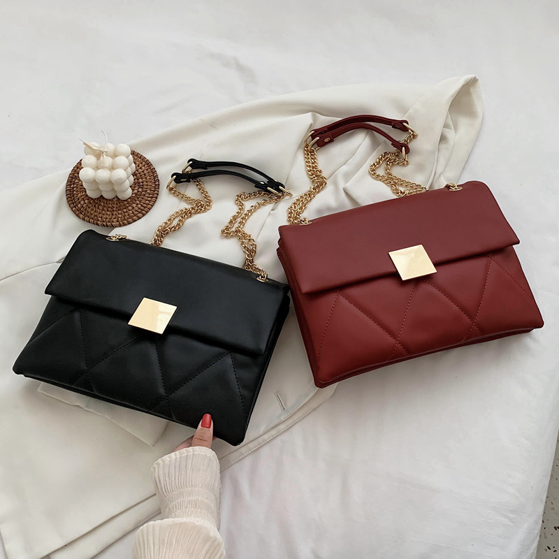 小香风菱格链条包新款锁扣单肩包斜挎小包软皮结婚女包手提包