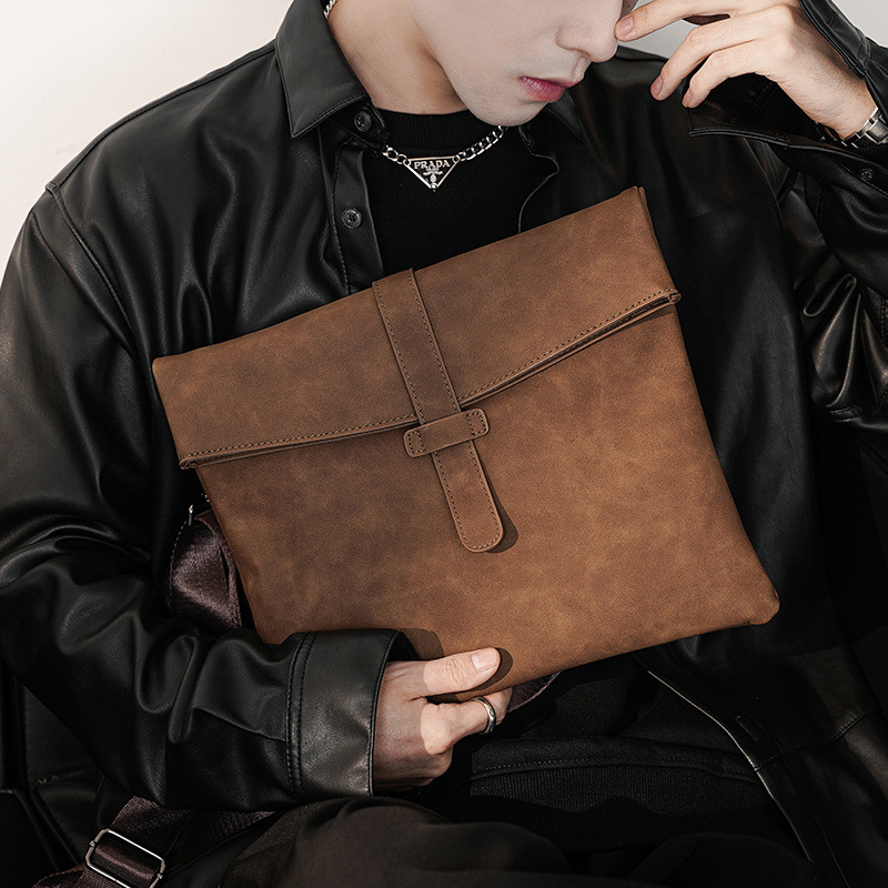疯马PU软皮单肩包男 斜挎包男士潮流日韩复古邮差包休闲时尚男包
