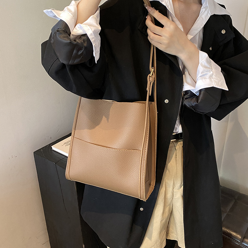 斜挎包韩版小众设计拼接复古单肩包大容量纯色PU通勤大容量包包女