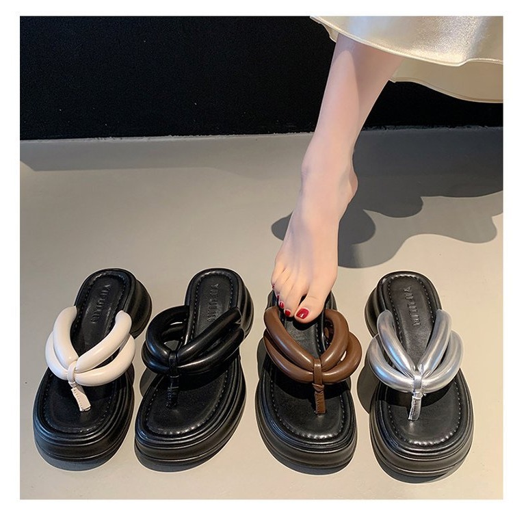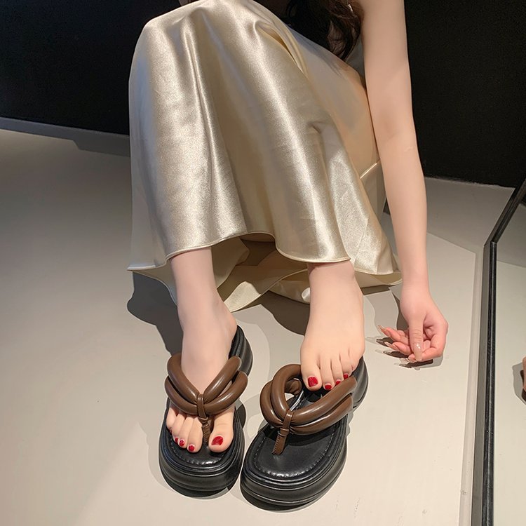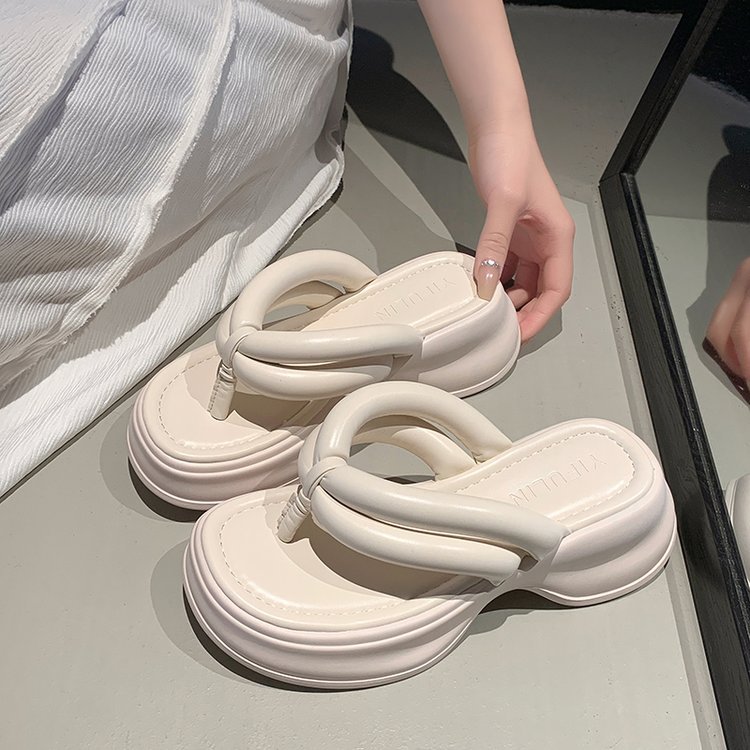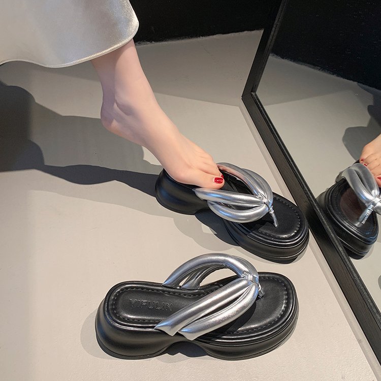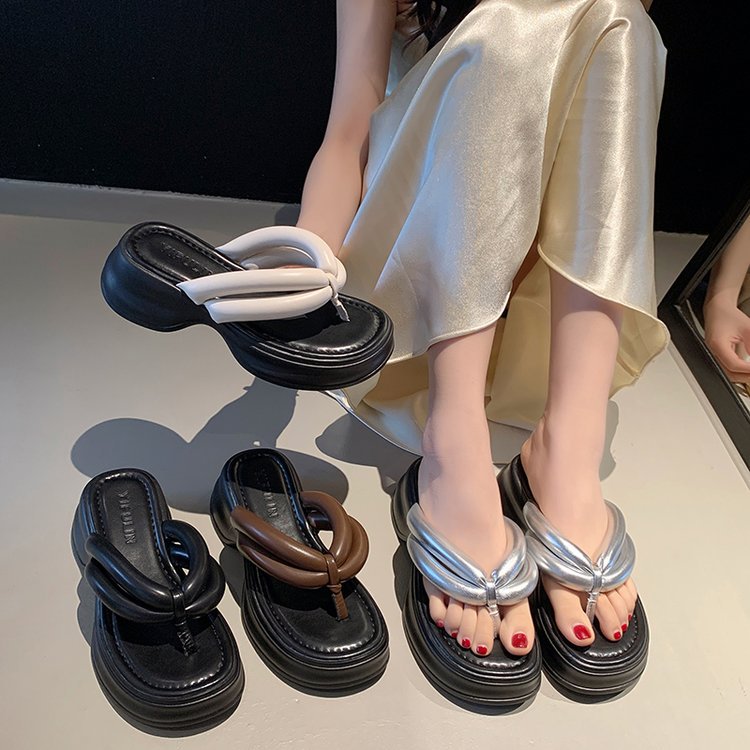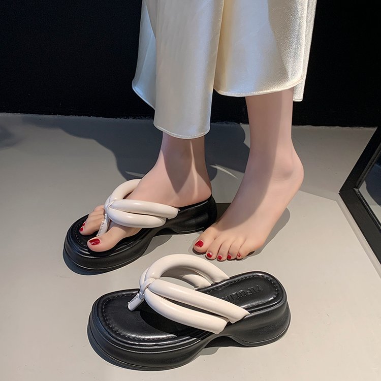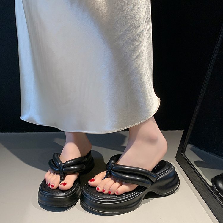 休闲风黑色防滑厚底人字拖鞋夏季新款时尚百搭女外穿沙滩拖鞋