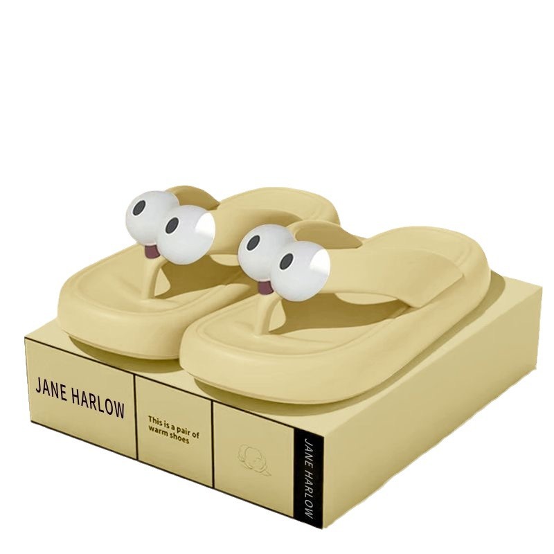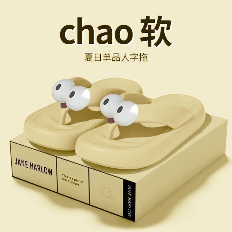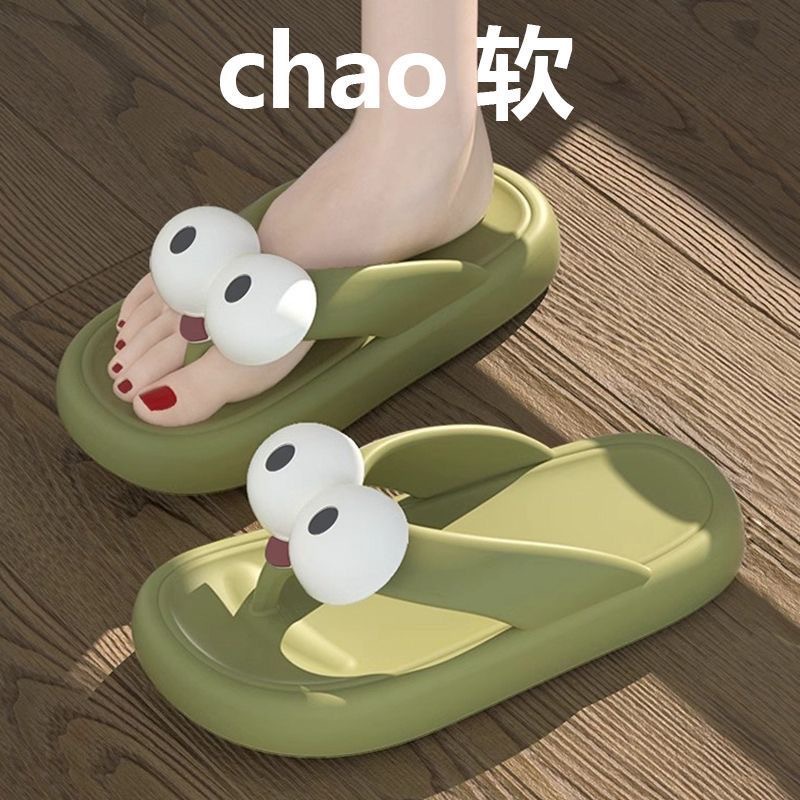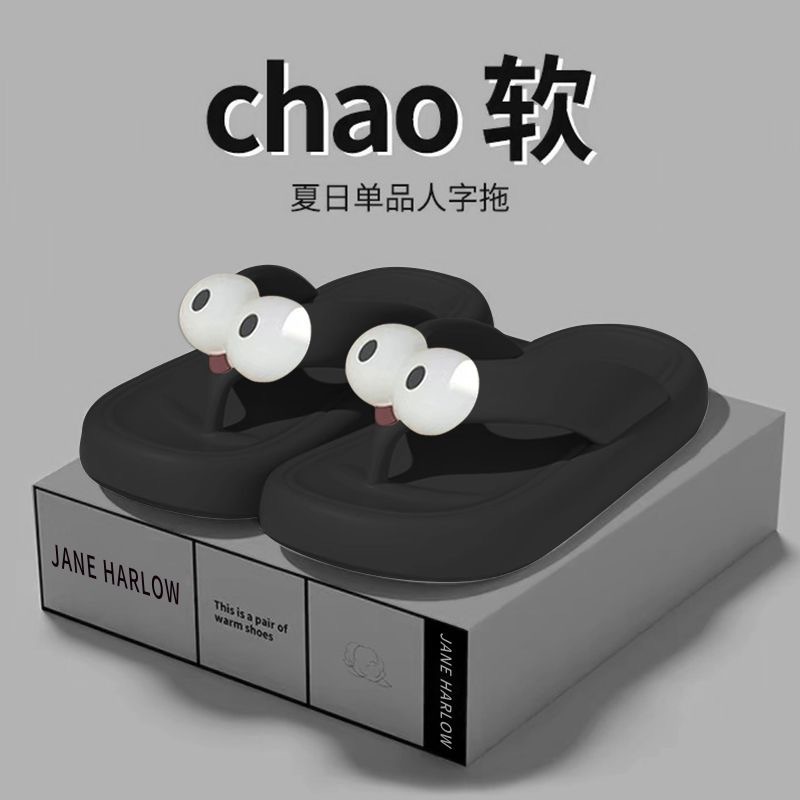 日系DIY女士拖鞋厚底EVA防水防滑人字拖女可爱大眼睛女凉拖鞋现货