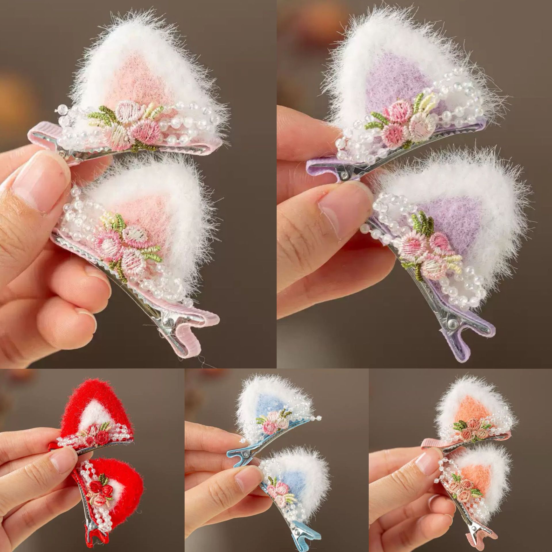 儿童猫耳朵发圈发绳可爱洛丽塔甜美对夹宝宝立体发夹发卡女童配饰