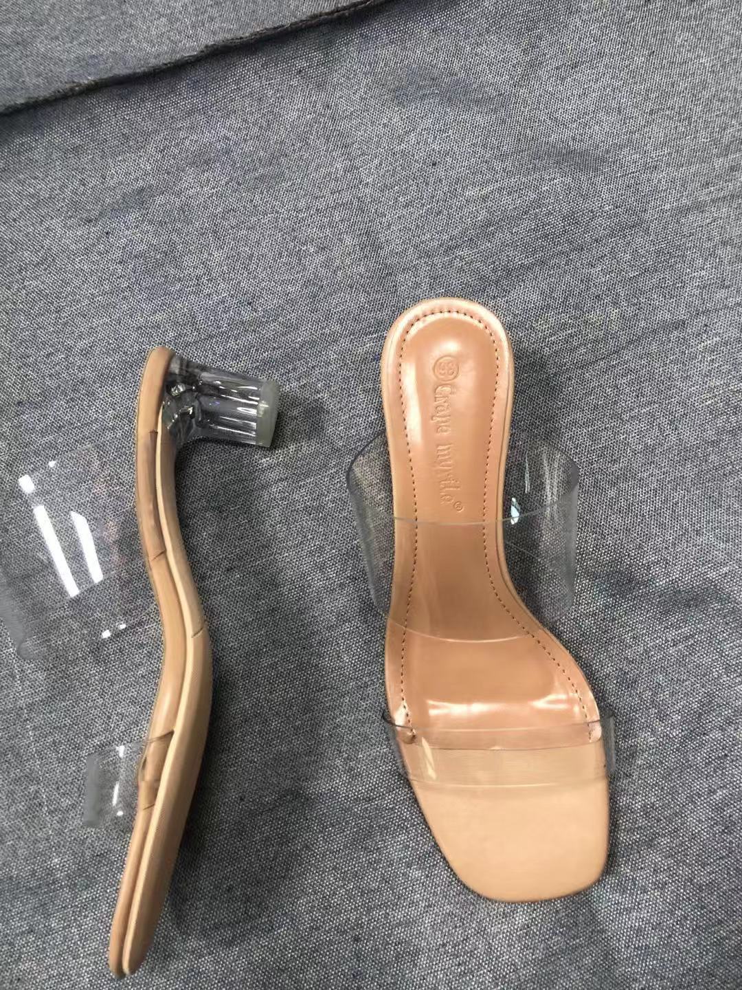 春季新款透明一字带凉鞋女外穿高跟水晶跟性感女粗跟凉拖鞋女