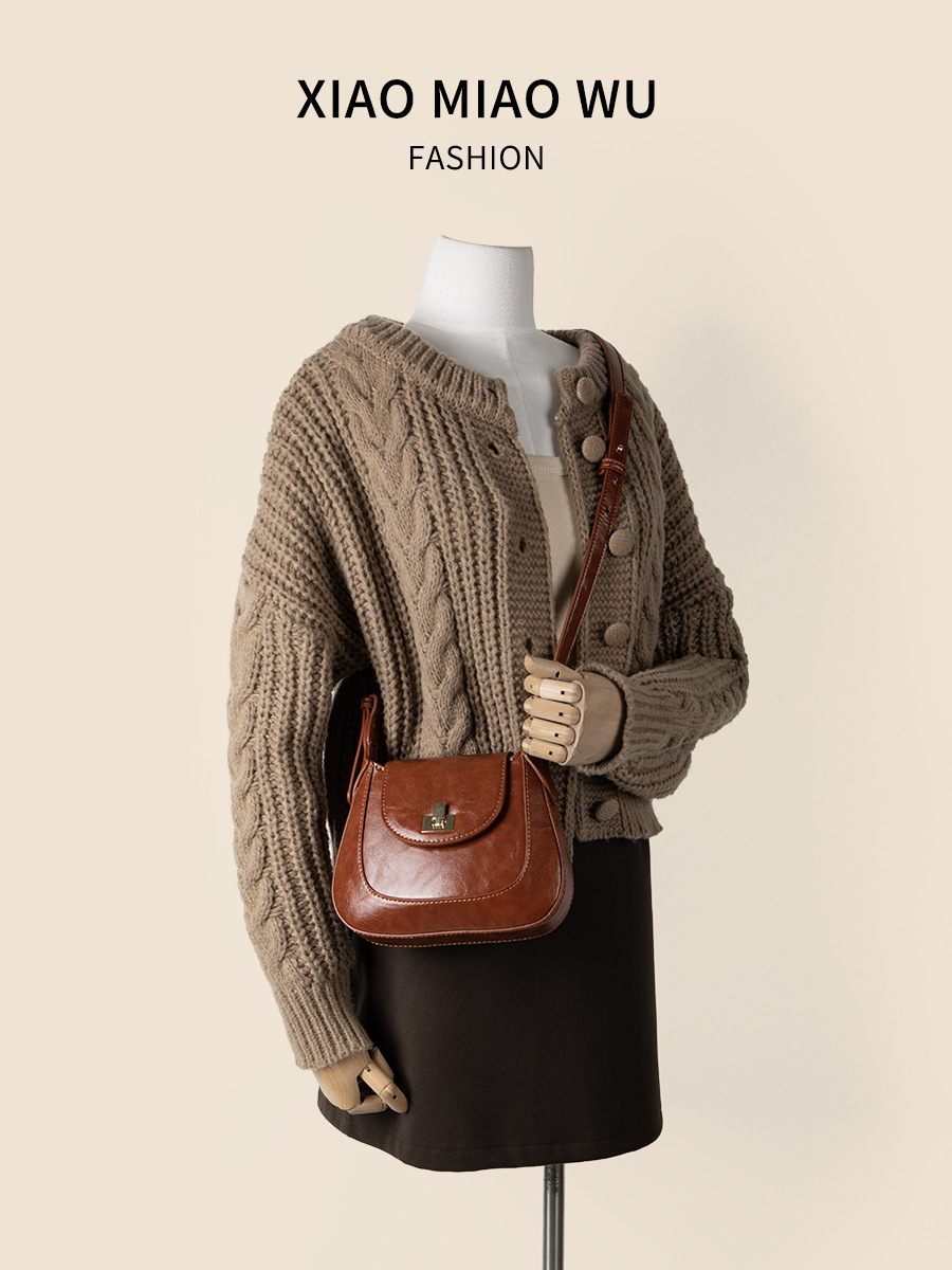 24早秋小众质感百搭新款头层牛皮通勤大容量水桶包优雅单肩斜跨包