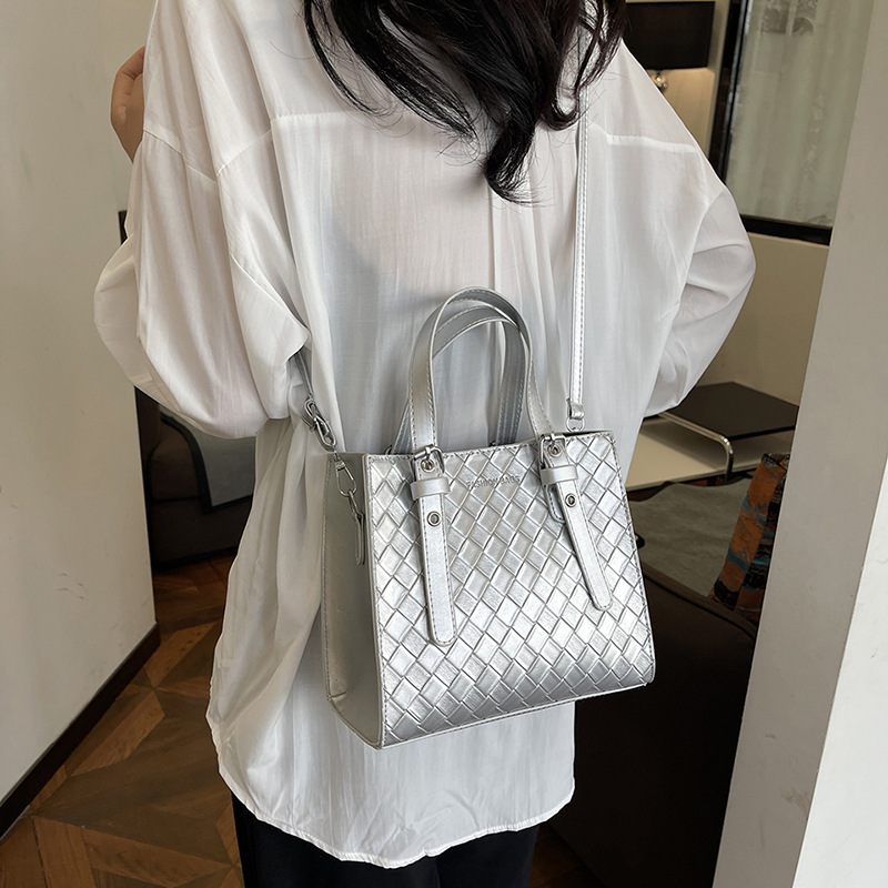 今年流行包包女新款高级感斜挎大容量通勤手提单肩银色托特包