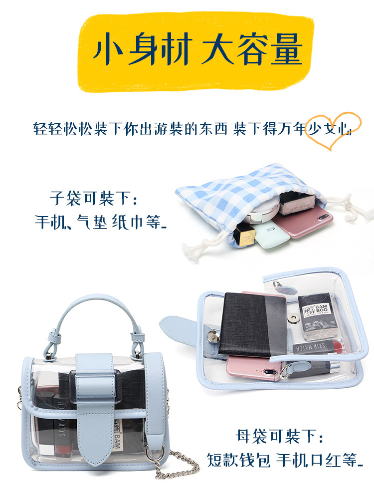 新款夏天mini小包包透明新款果冻包子母包迷你链条斜挎包