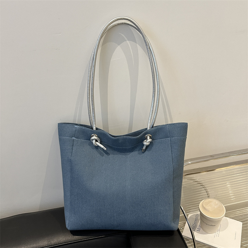 新款牛仔布单肩包休闲两面用学生上课帆布包百搭大容量通勤托特包