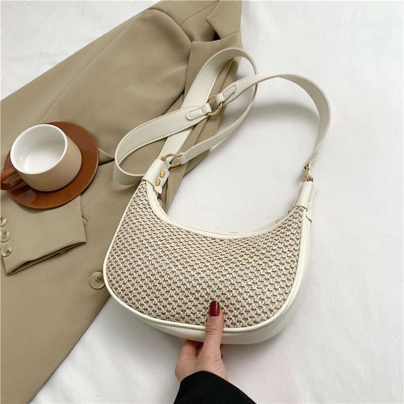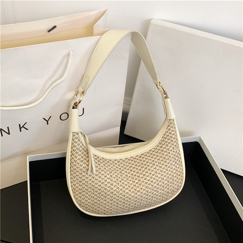 女士单肩斜挎包ins编织腋下包包 简约百搭饺子小包女