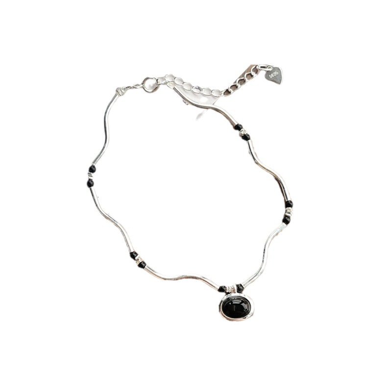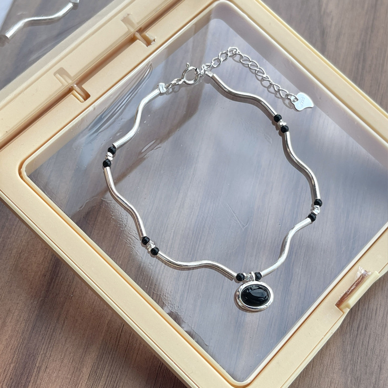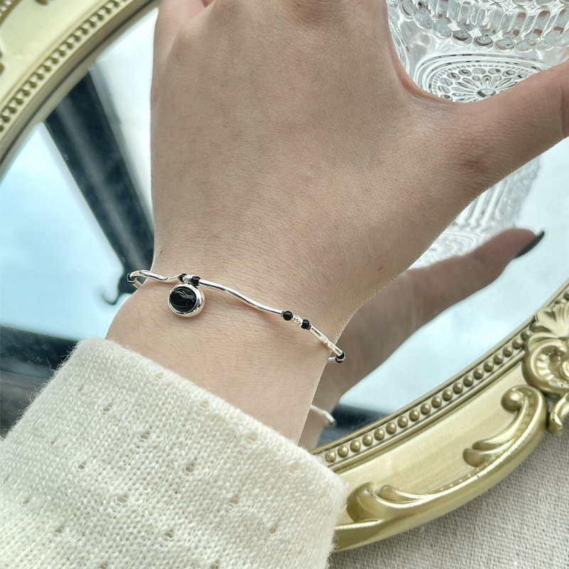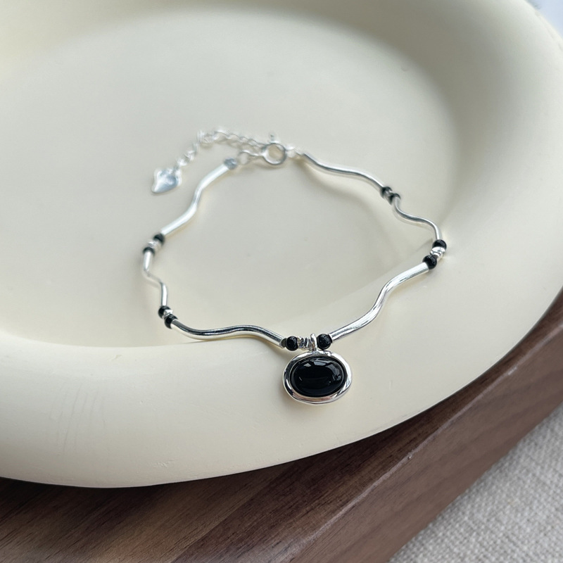 S925纯银小众设计黑玛瑙手链女百搭简约串珠ins风手环高级感手饰