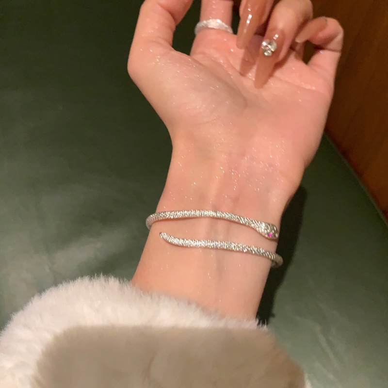 Ju好看!冷性风设计感镀银小蛇手镯女镀银小众百搭高级感手饰手链