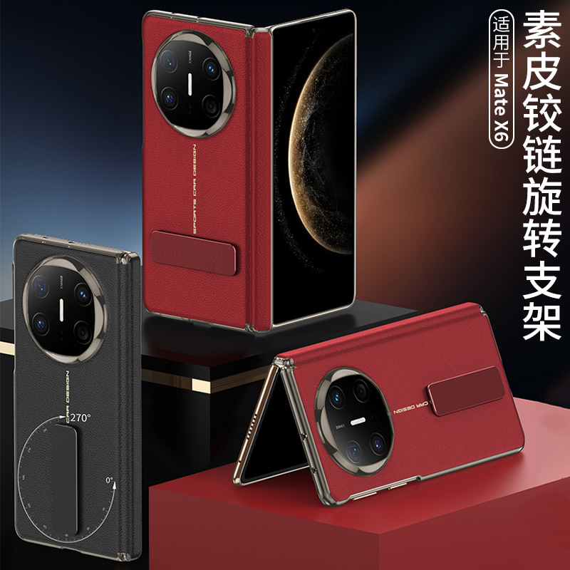 华为mateX6手机壳电镀分体带旋转支架单壳铰链素皮保护套商务