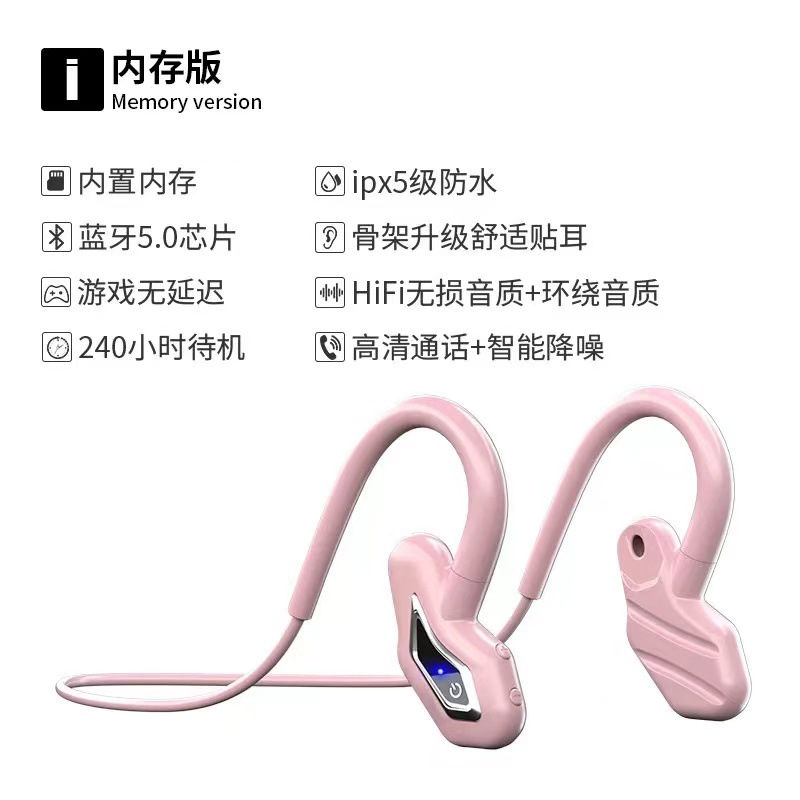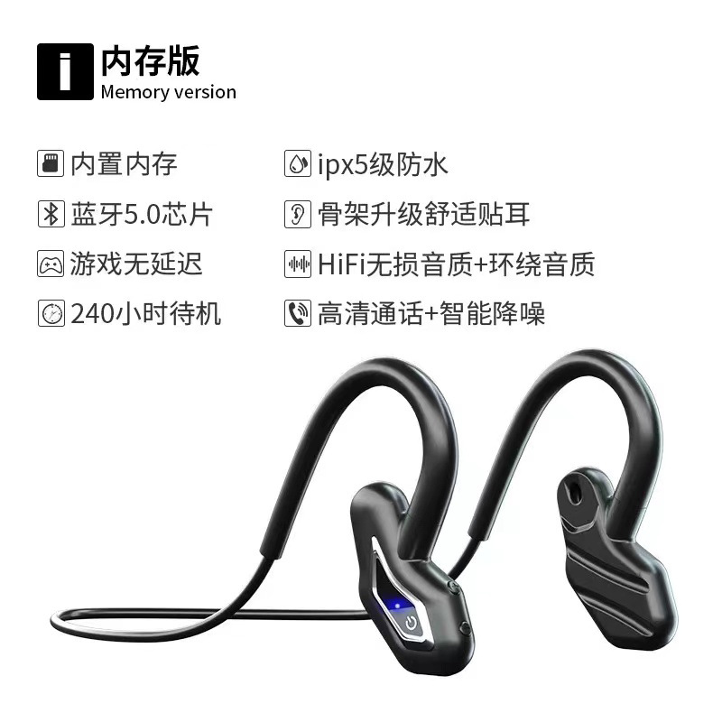 新款骨传导蓝牙耳机自带内存MP3音乐挂耳式运动蓝牙耳机骨传导5.2