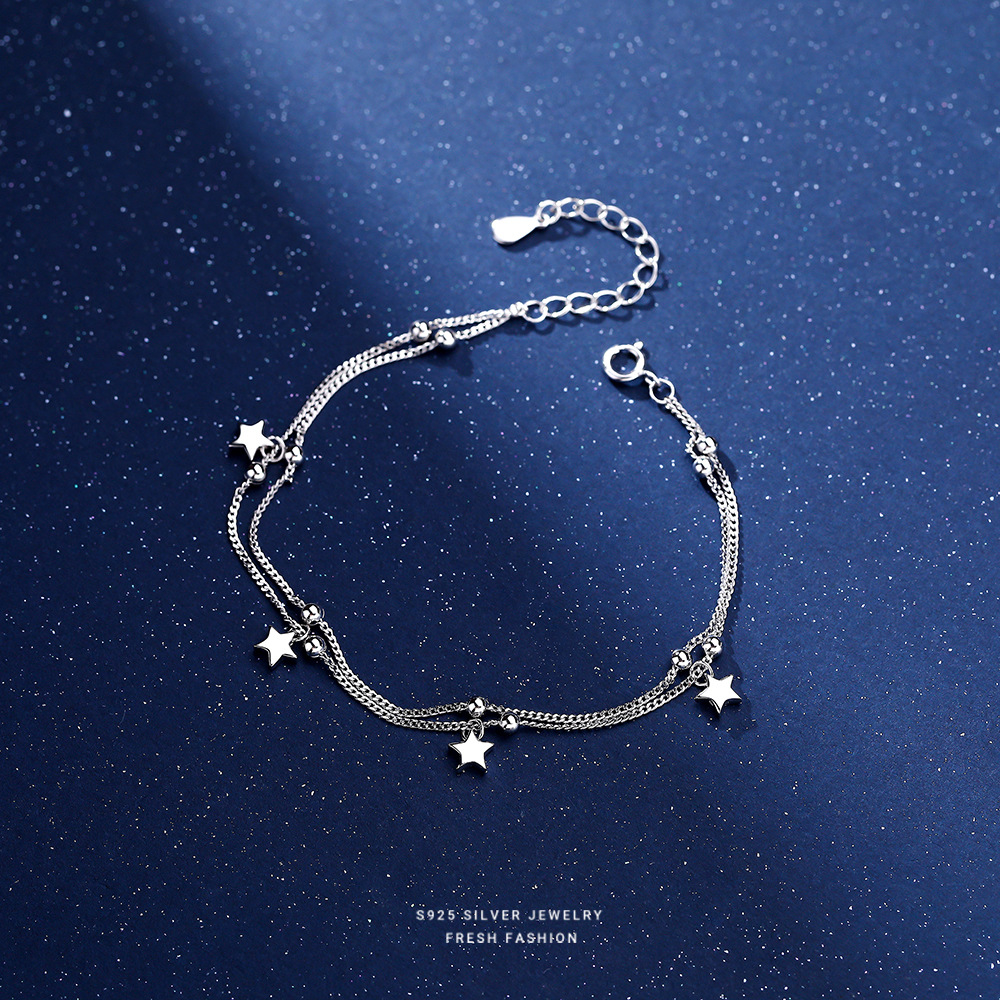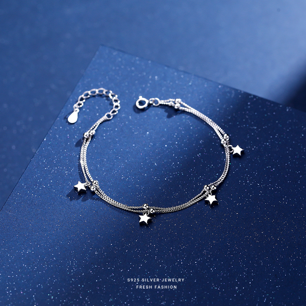 s925纯银小星星双层手链女韩系轻奢小众百搭星辰圆珠手链手饰