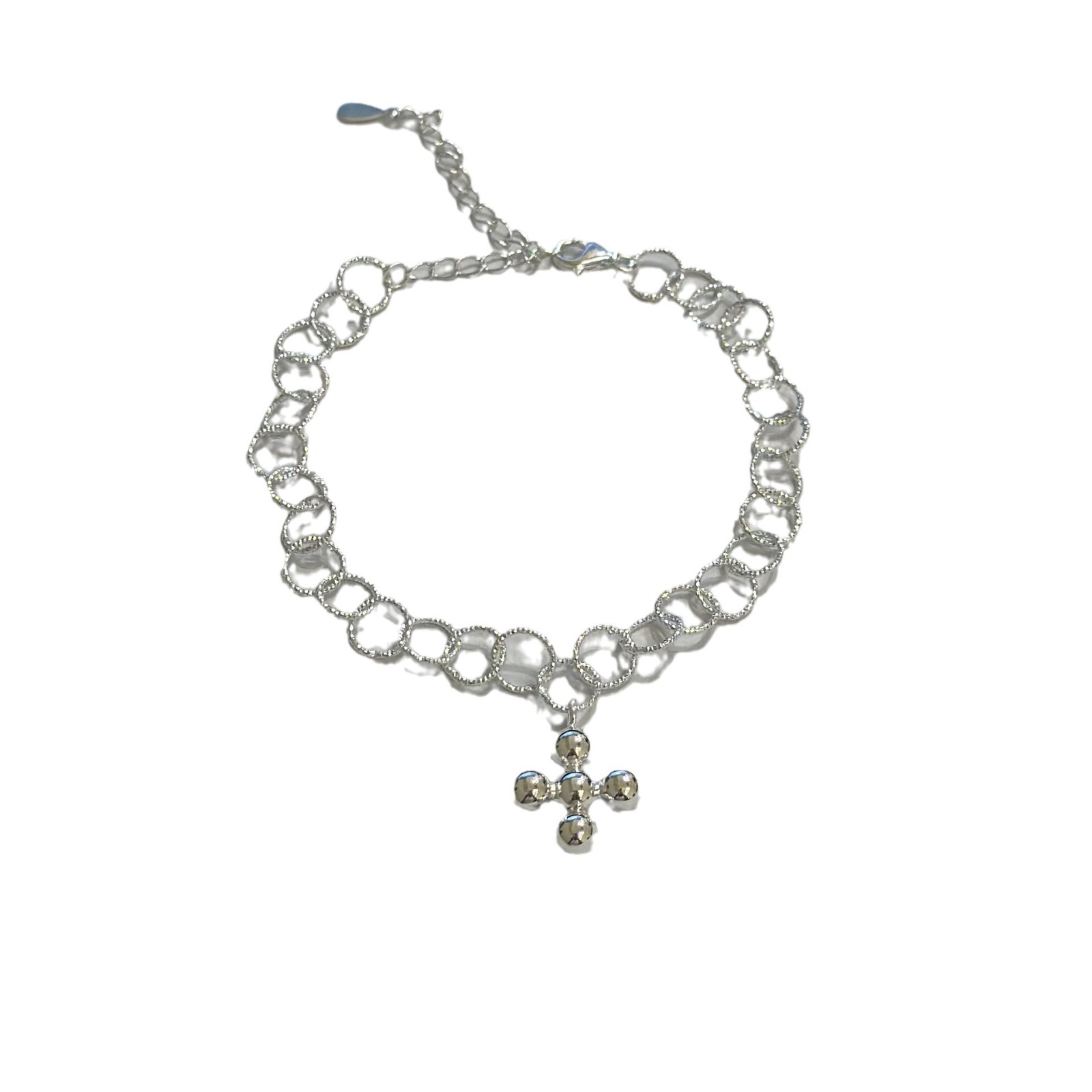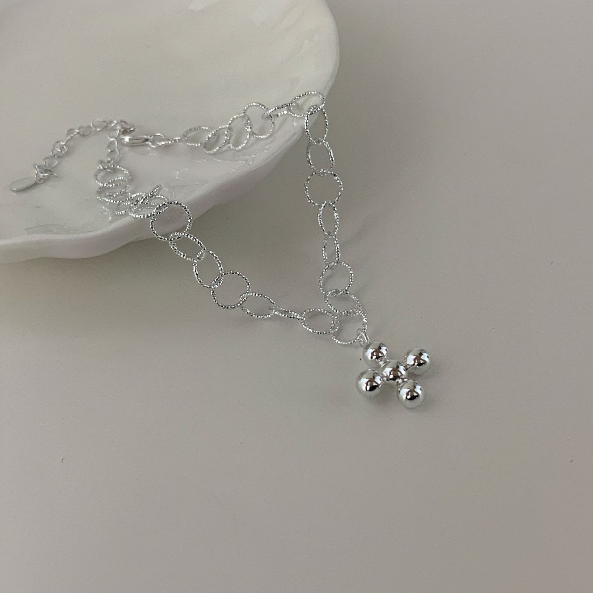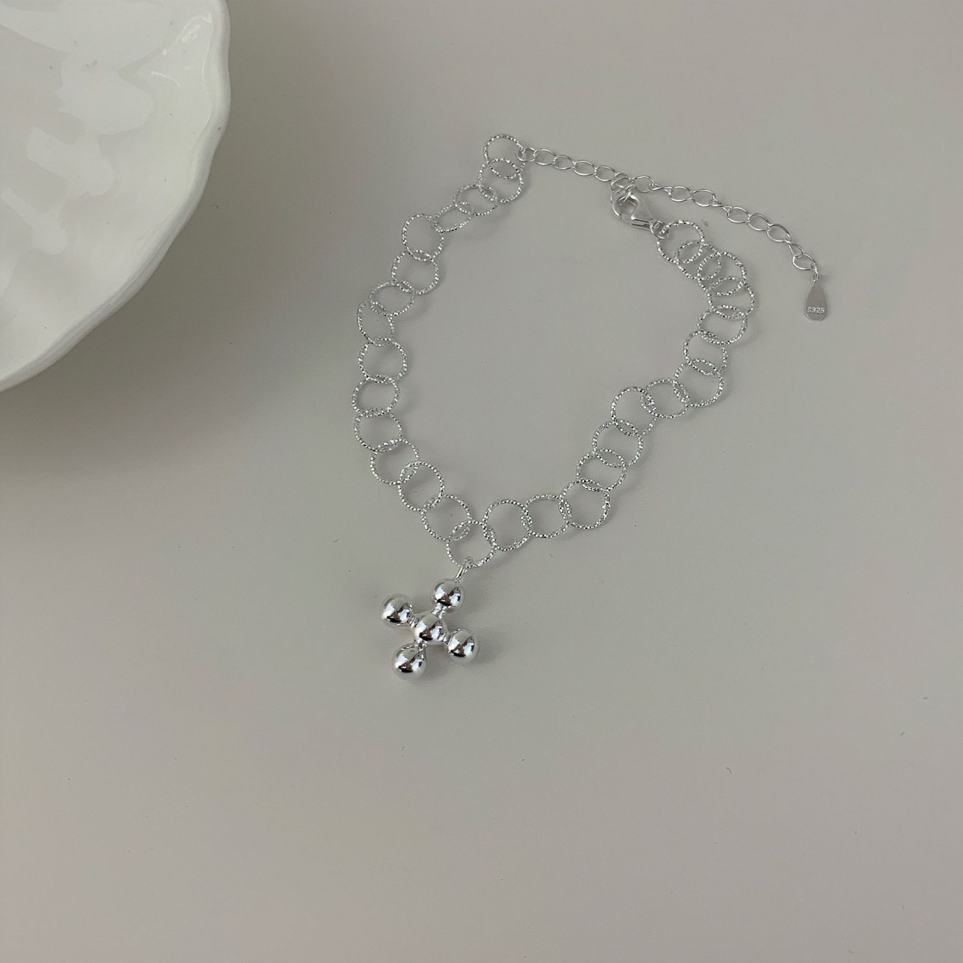 素创S925纯银闪亮圈圈十字圆珠手链女百搭高级感小众波光粼粼手饰
