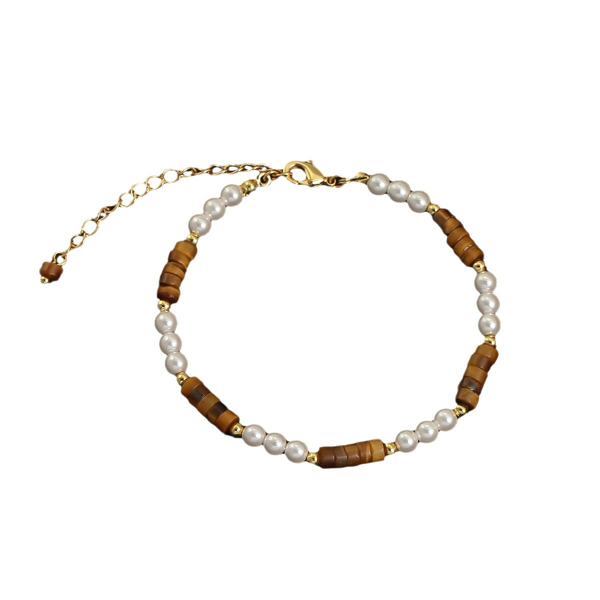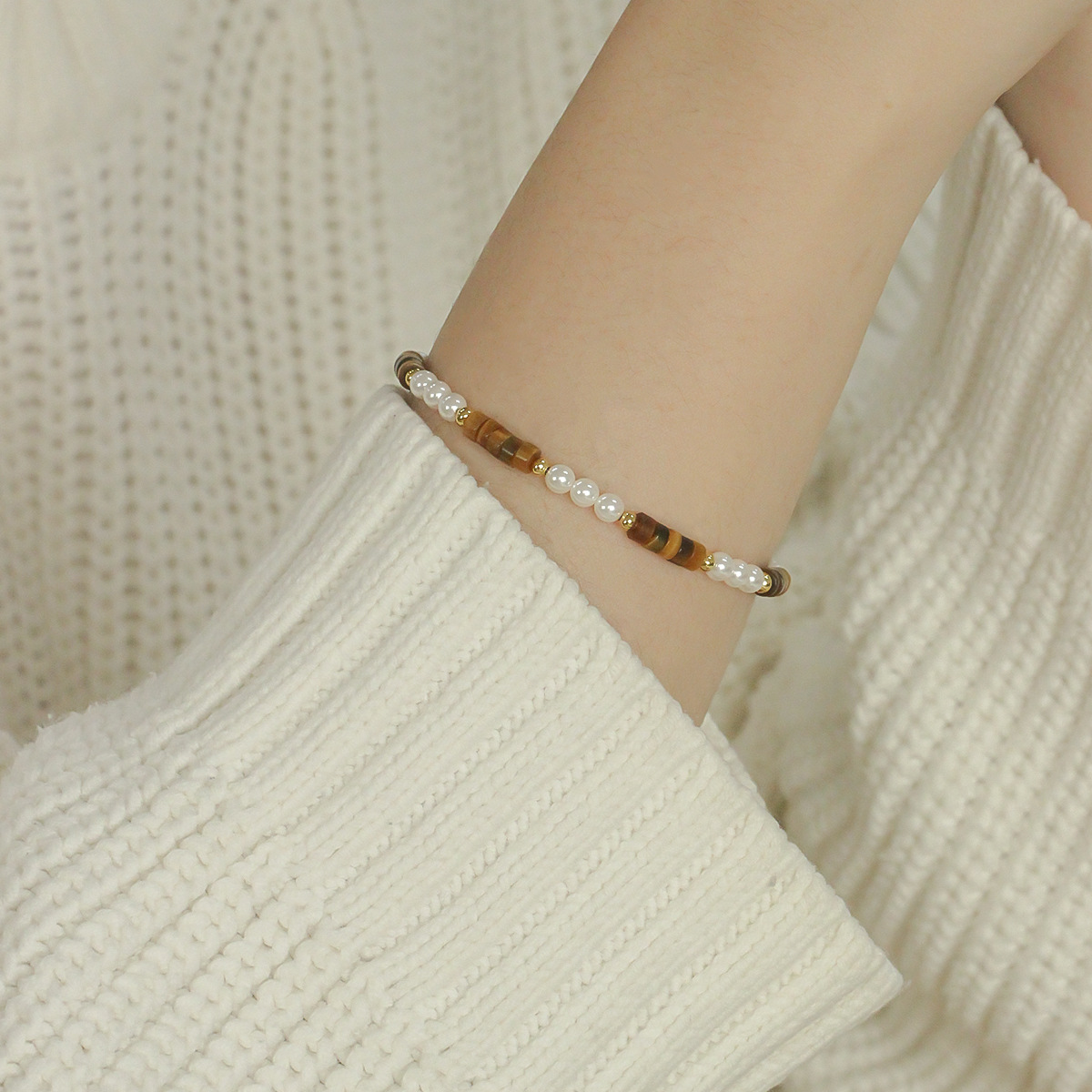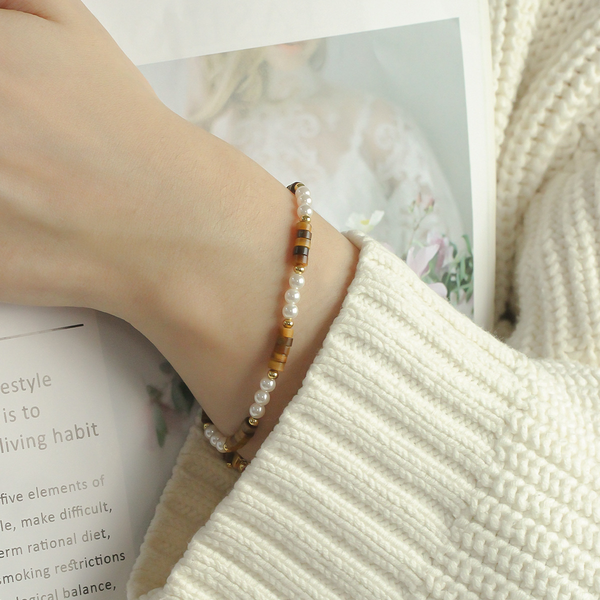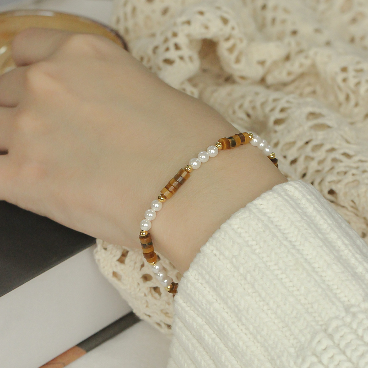 文艺范撞色虎眼石珍珠手链女百搭高级感手链小众设计轻奢闺蜜手链