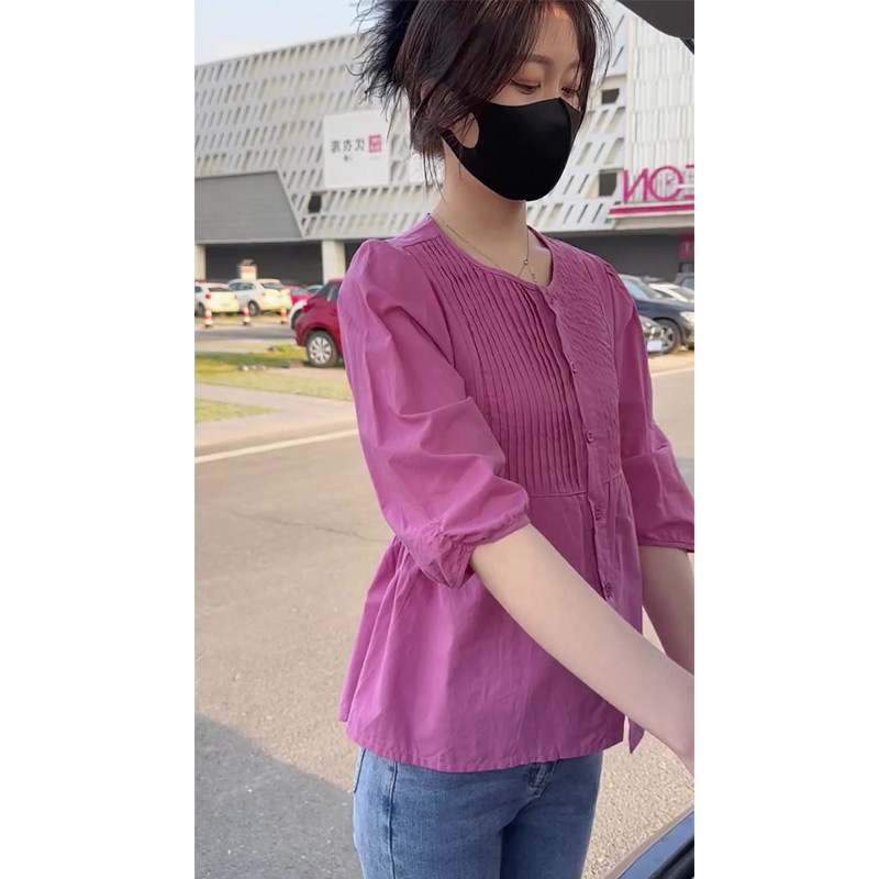 粉色衬衫外穿气质衬衣外套女薄款夏季上衣小个子新款宽松防晒