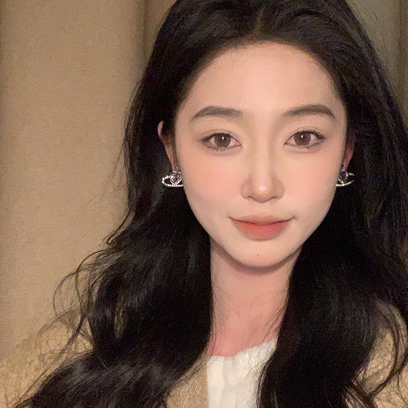 爱心星球紫色宝石耳环春夏气质温柔精致浪漫闪耀锆石耳钉百搭耳饰