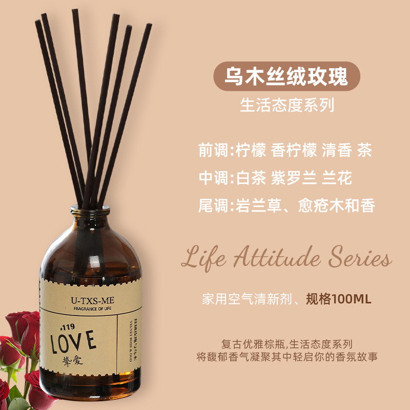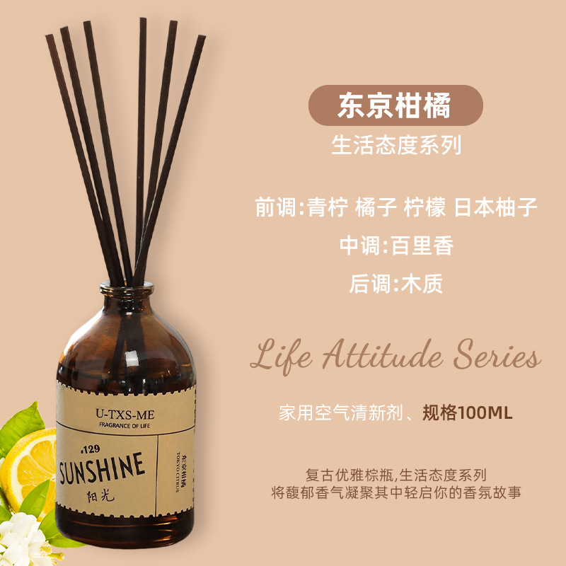 香薰无火精油藤条高级卫生间香薰家用卧室空气清新剂香氛摆件
