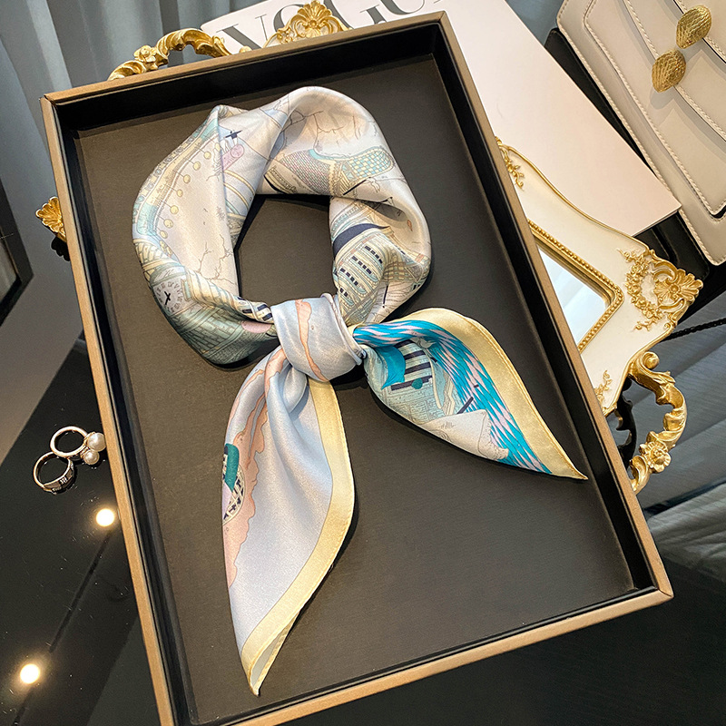 春季新款减龄时尚真丝丝巾高级洋气百搭桑蚕丝丝巾印花围巾女