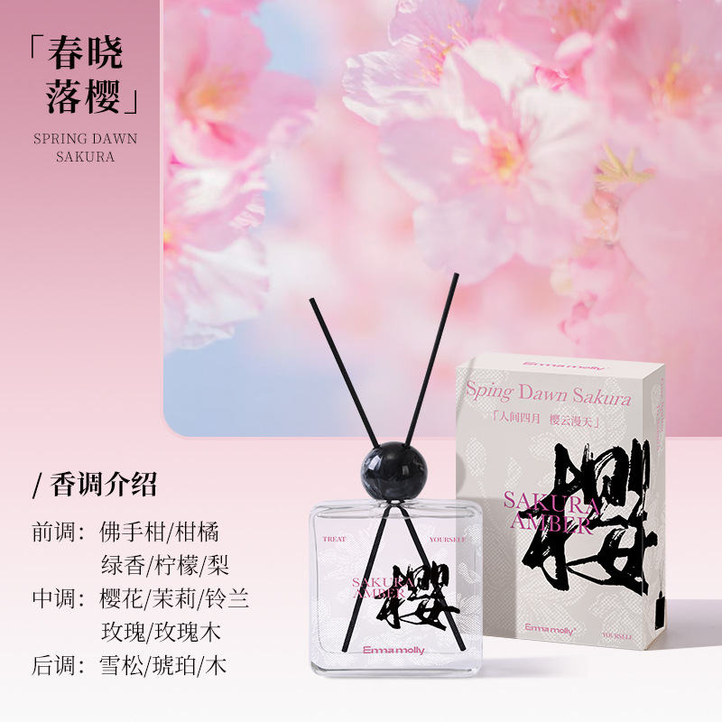 EMMA MOLLY艾玛莫莉无火香薰藤条淡香卧室香氛精油摆件跨境新品