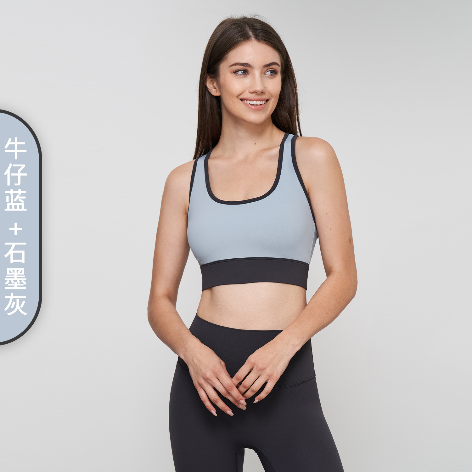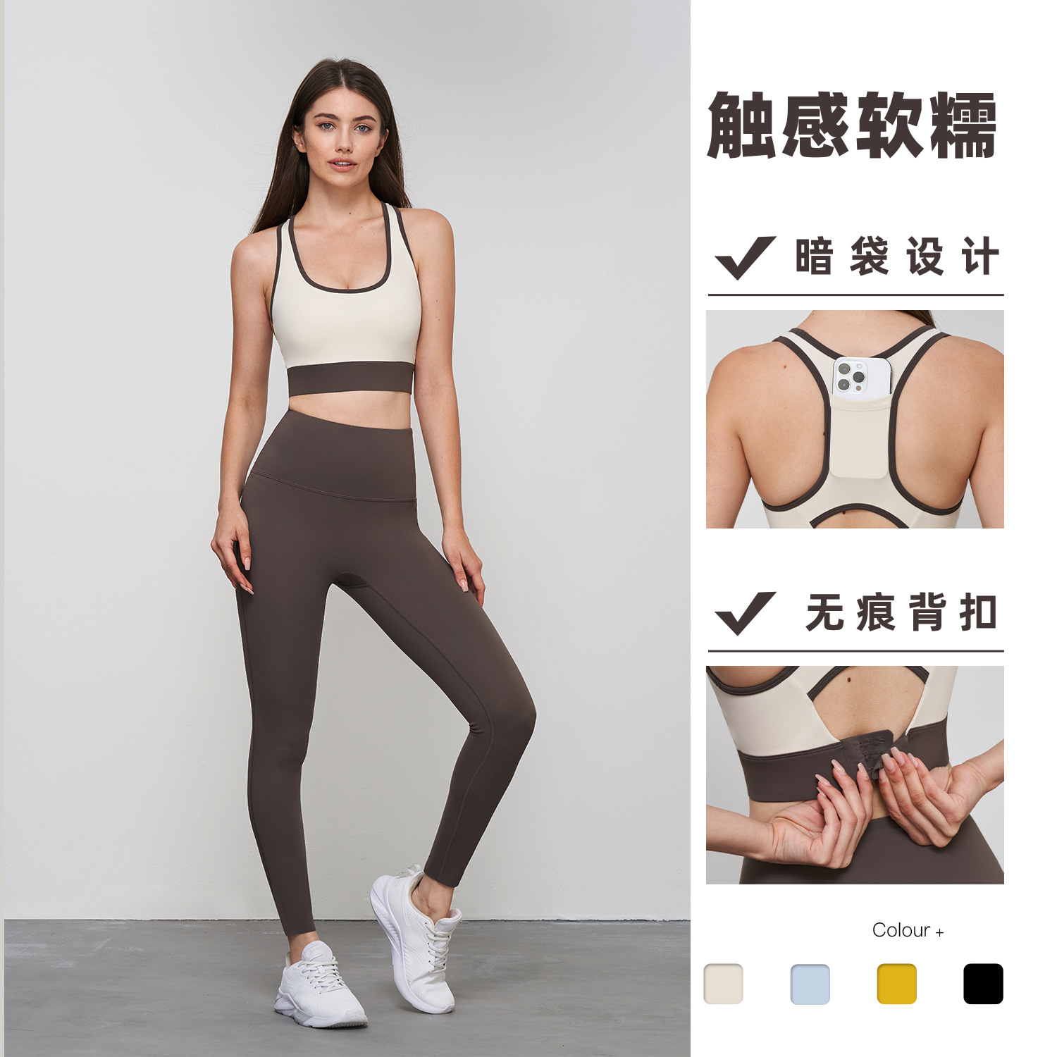 SS莱卡中强度运动内衣裸感撞色后背口袋瑜伽bra镂空美背健身文胸
