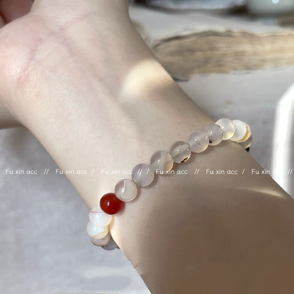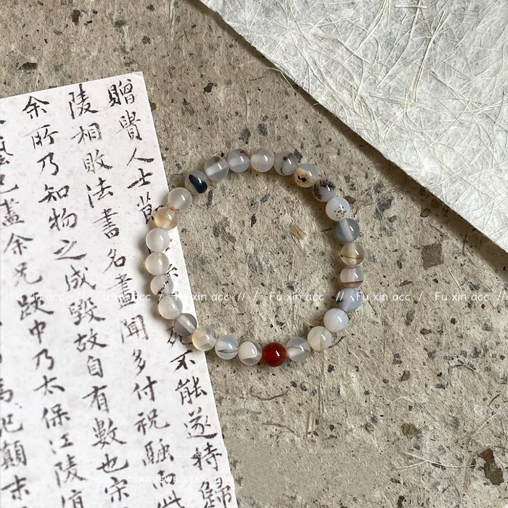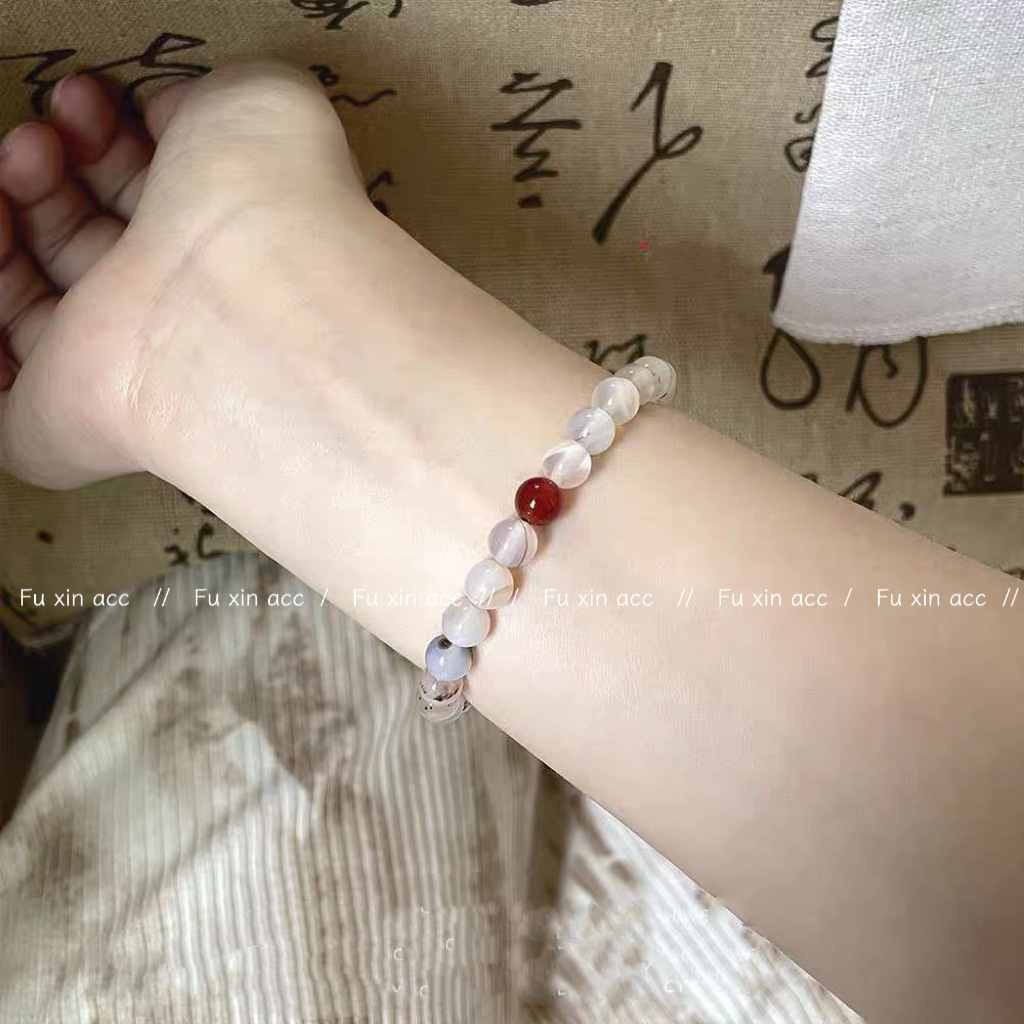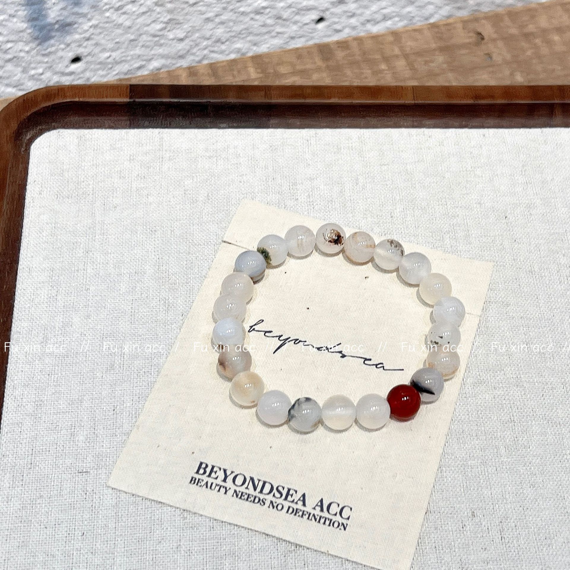新中式天然玛瑙手链女红白草花高级感气质手串冷淡风简约百搭手饰