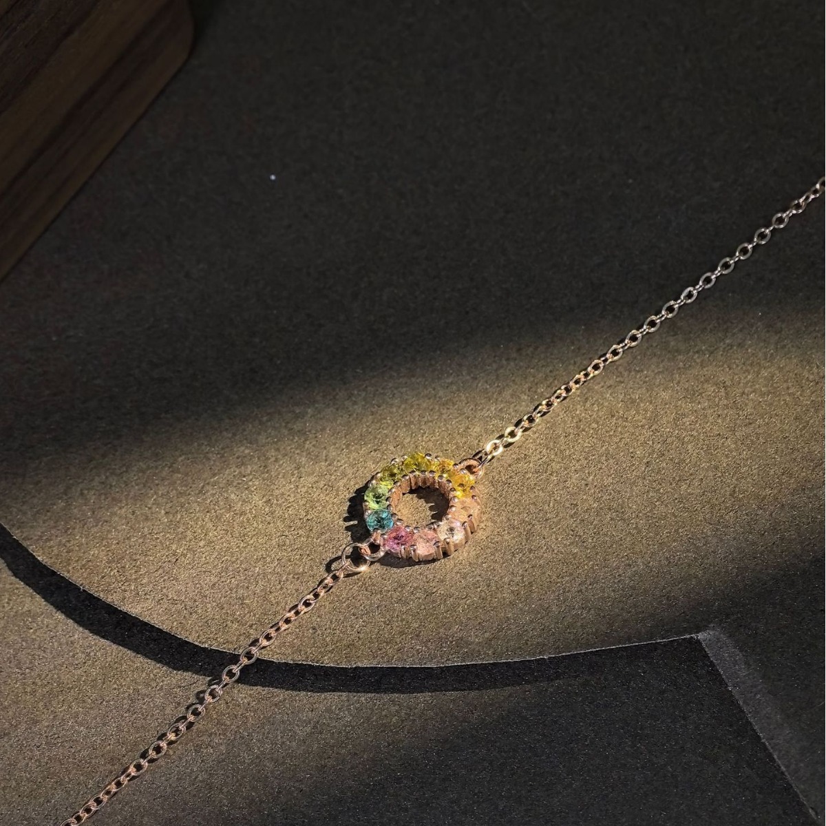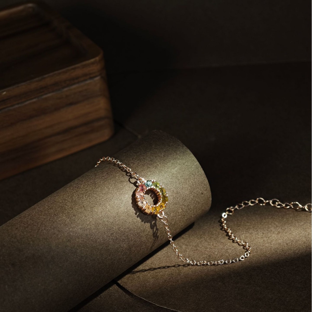 S925银镶嵌天然彩虹碧玺手链手百搭高级感手链批发爆款