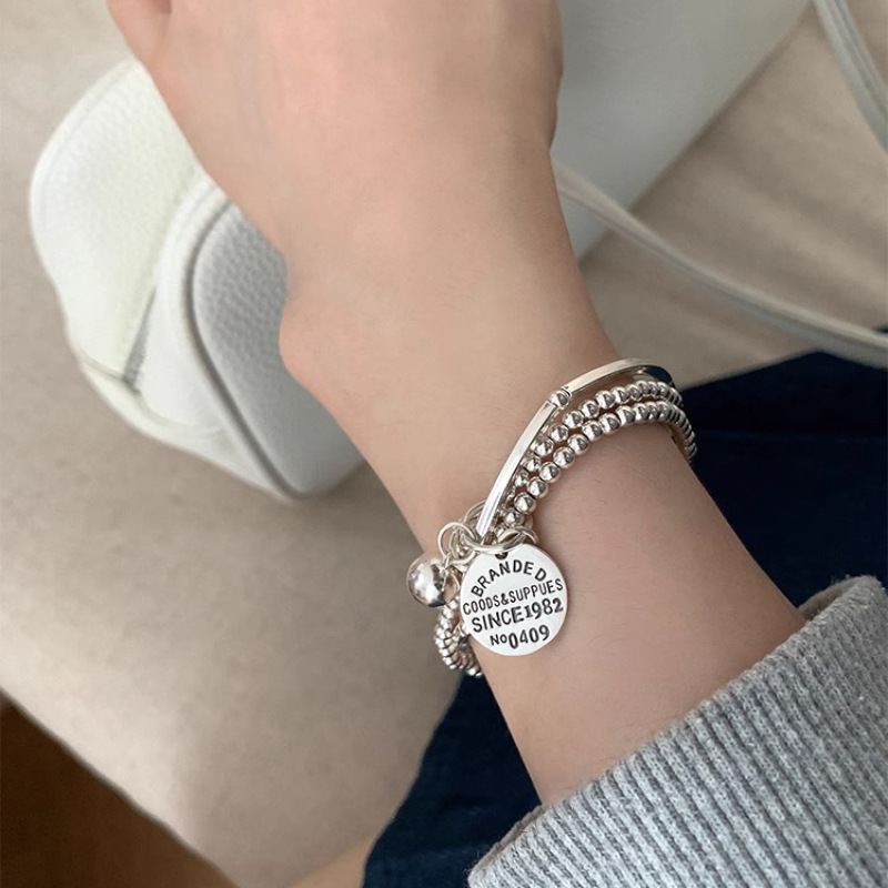 韩版手链女小众高级感百搭简约三层圆牌吊坠手链时尚轻奢小众气质