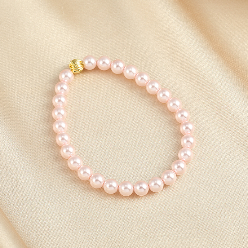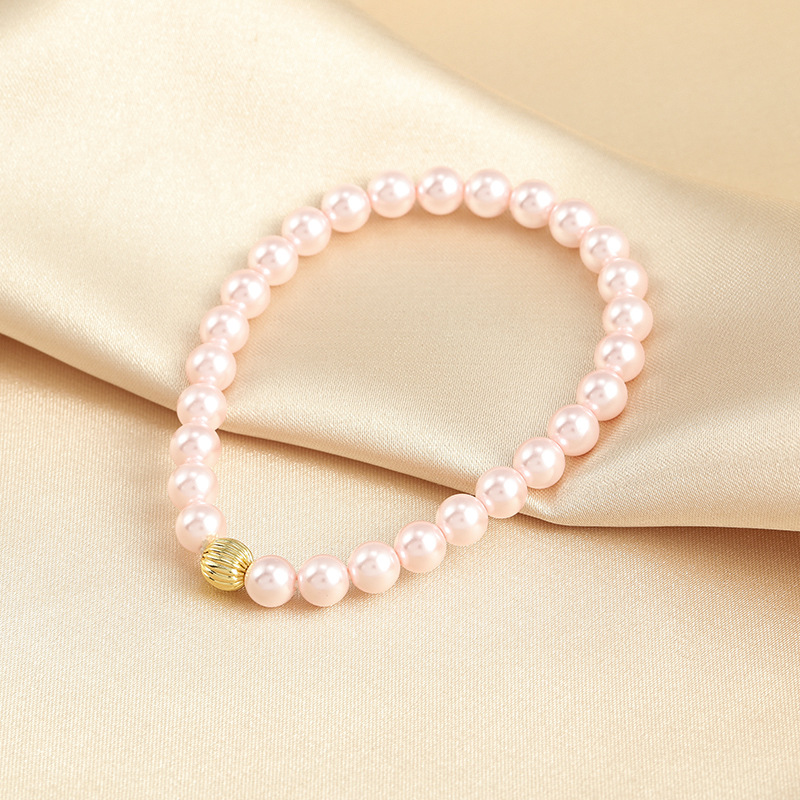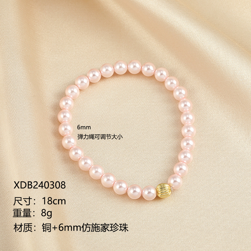 新款施家珍珠手链南瓜圆珠弹力绳手串小清新粉色高级感配饰百搭女