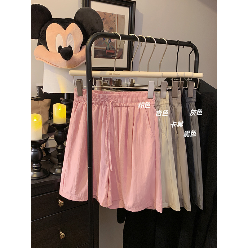 夏季宽松松紧腰抽绳显瘦阔腿裤直筒纯色休闲裤短裤子